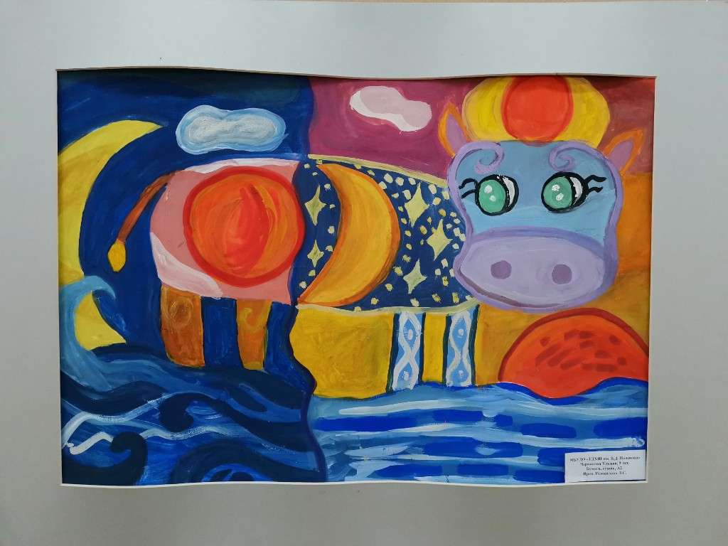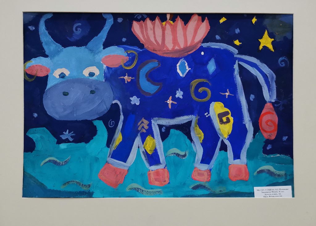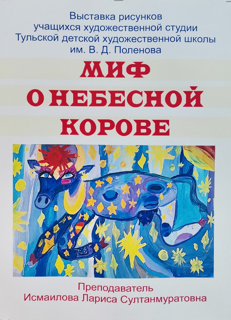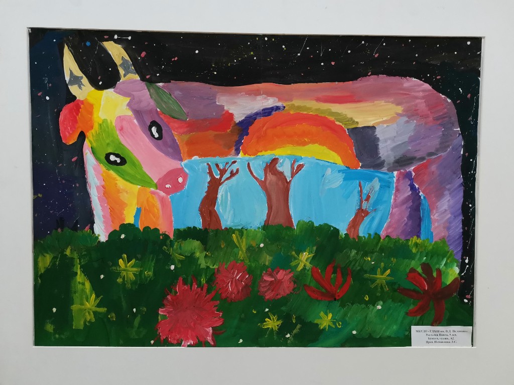 Выставка детских работ 'Миф о небесной корове' приглашает зрителей окунуться в волшебный мир фантазии и творчества юных художников. Каждая работа настраивает настроение загадочных сказок и легенд о таинственной небесной корове – существе, обладающем магической силой. Радужные краски, игривые линии и необычные композиции поражают воображение и приглашают на экскурсию по миру детских мечтаний. Откройте для себя удивительный живописный мир, созданный невероятным воображением детей.