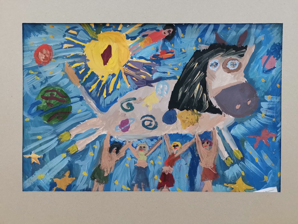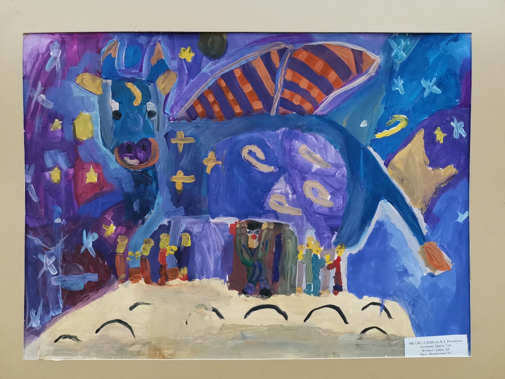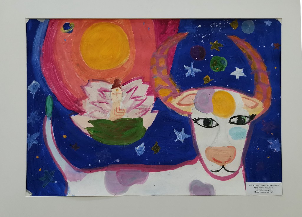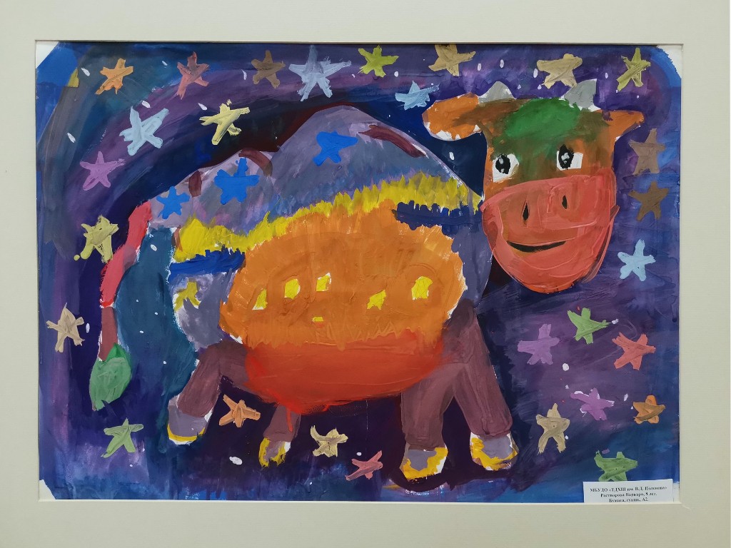 Выставка детских работ 'Миф о небесной корове' приглашает зрителей окунуться в волшебный мир фантазии и творчества юных художников. Каждая работа настраивает настроение загадочных сказок и легенд о таинственной небесной корове – существе, обладающем магической силой. Радужные краски, игривые линии и необычные композиции поражают воображение и приглашают на экскурсию по миру детских мечтаний. Откройте для себя удивительный живописный мир, созданный невероятным воображением детей.
