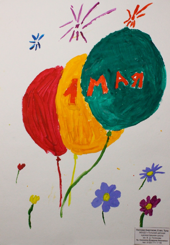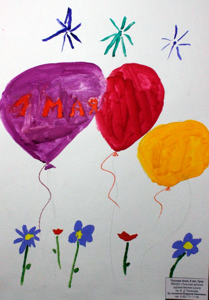 Выставка посвящена Празднику Весны и Труда 1 мая. Рисунки учащихся студии преподавателя Соломатина Владимира Николаевича.