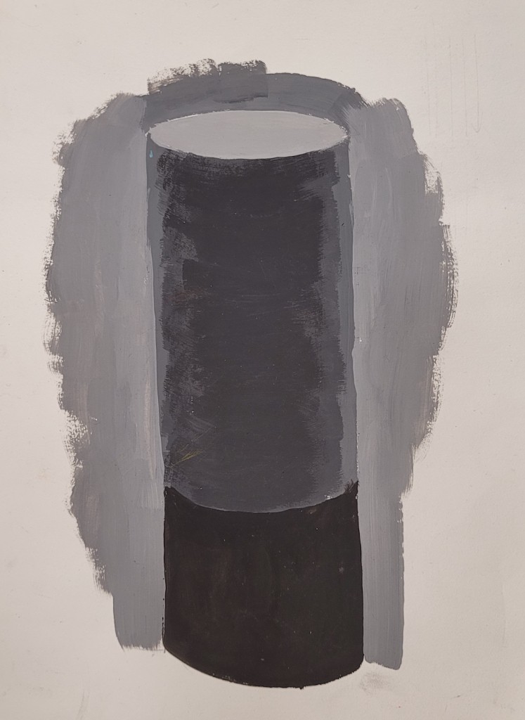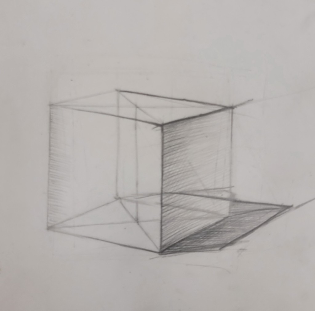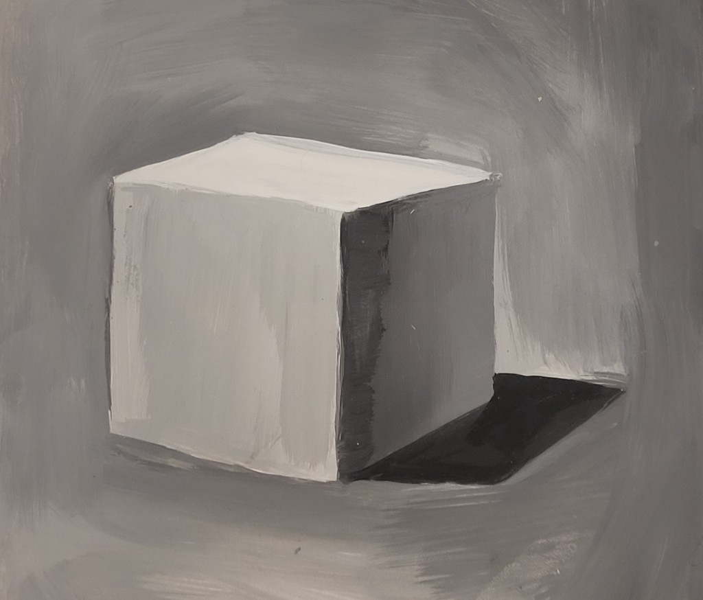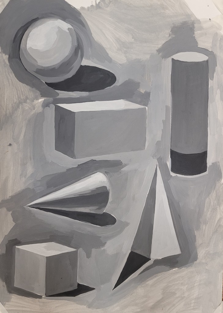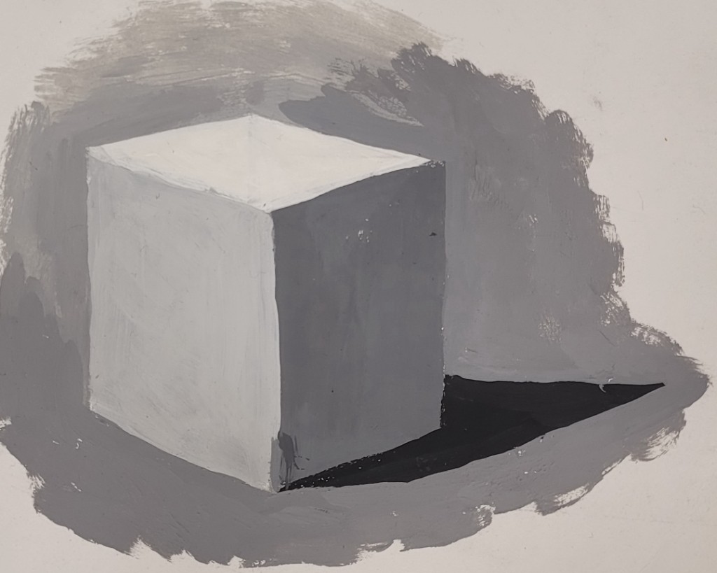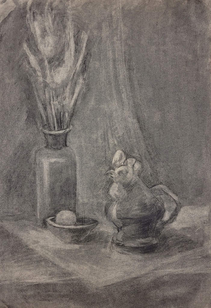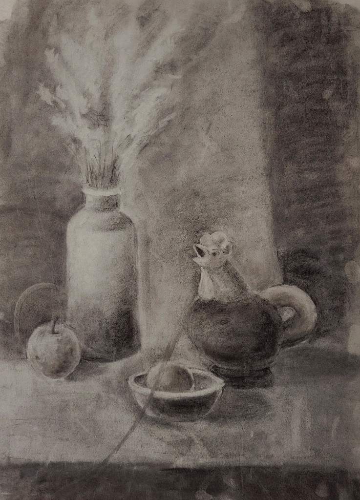 На вставке представлены работы детей 13–14 лет, выполненные графитным карандашом и угольной пудрой с натуры (натюрморты) и по представлению (геометрические тела с заданным источником света).