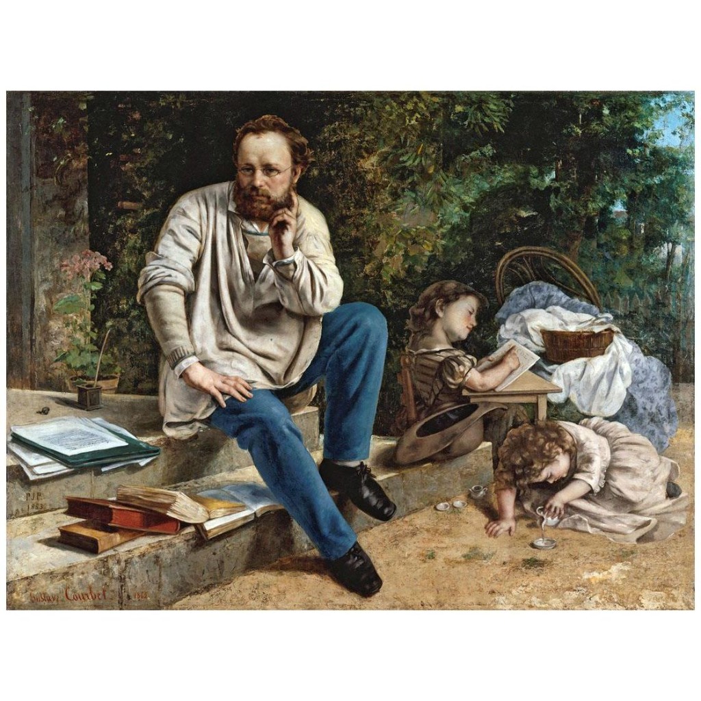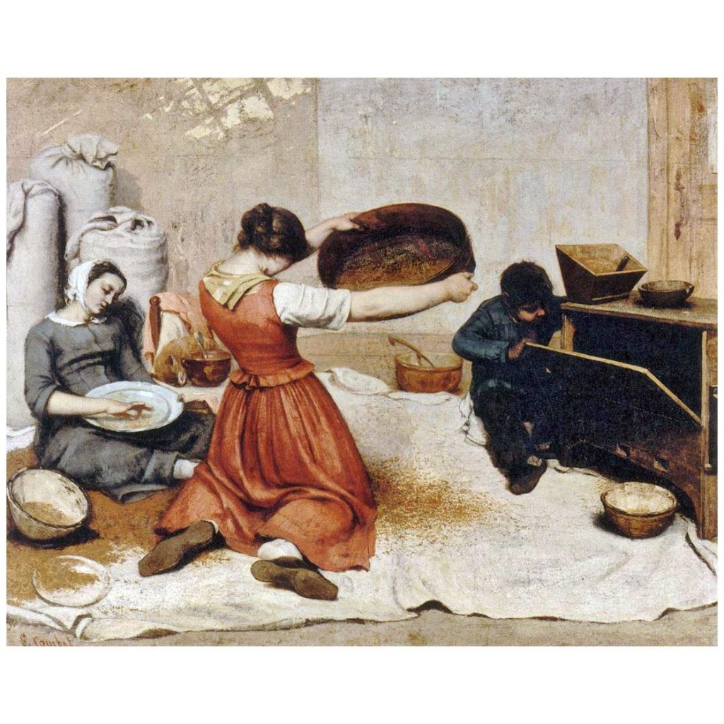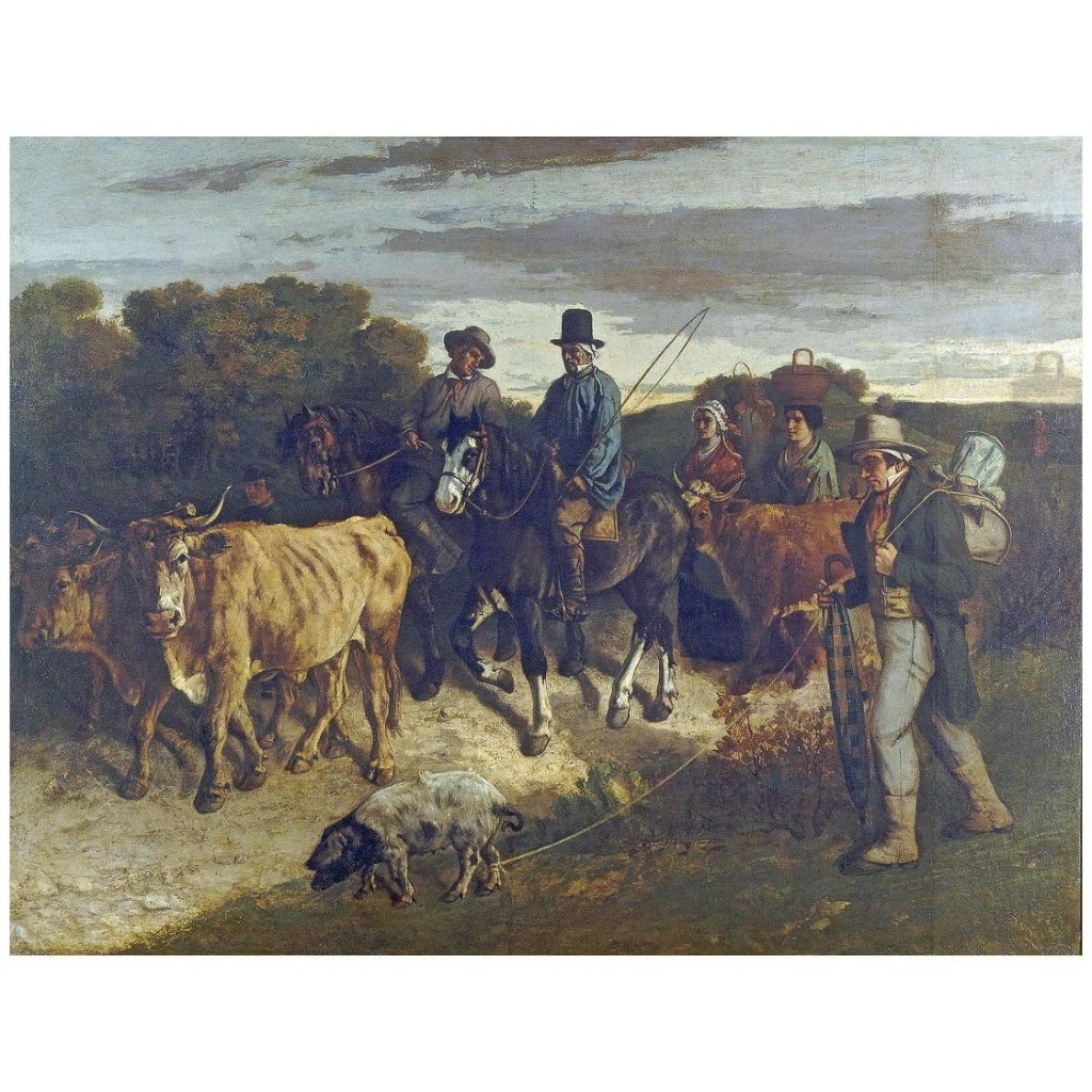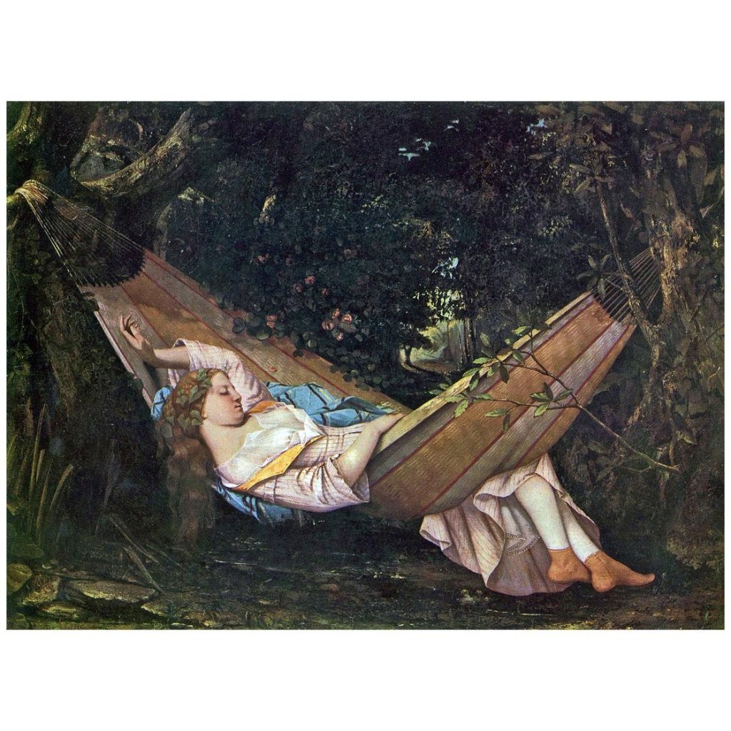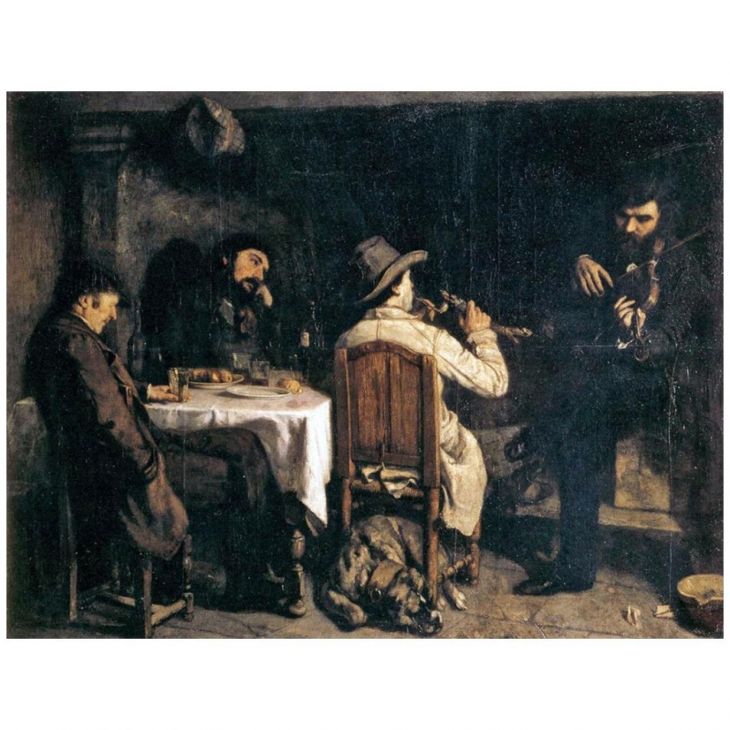 Гюстав Курбе родился в городке Орнан (Ornans) в 25 км от Безансона, около швейцарской границы. Его отец Regis Courbet владел виноградниками и хотел, чтобы его сын стал юристом. Мальчик любил природу, друзей, своих близких, придумывал разные истории и рисовал. Выполняя волю отца, Гюстав поступил в Королевский колледж Безансона, параллельно с учёбой стал посещать занятия в Колледже изобразительного искусства, увлёкся живописью и твёрдо решил посвятить жизнь искусству. В 1839 году Курбе отправился в Париж, пообещав отцу что будет там изучать юриспруденцию. Там Курбе познакомился с художественной коллекцией Лувра. На его творчество, в особенности раннее, повлияли малые голландцы и испанские художники, особенно Веласкес (Diego Velazquez), у которых он заимствовал общие тёмные тона картин. Курбе не стал заниматься юриспруденцией, а вместо этого начал занятия в художественных мастерских, у К.К. Штейбена, исторического живописца немецко-русского происхождения, проживавшего во Франции. Первая картина Курбе «Автопортрет с собакой», была выставлена в le Salon в 1844 году. С самого начала художник показал себя реалистом, и чем далее, тем сильнее и настойчивее следовал по этому направлению, считая конечной целью искусства передачу действительности и жизненной прозы и пренебрегая при этом даже изяществом техники.