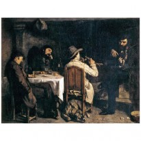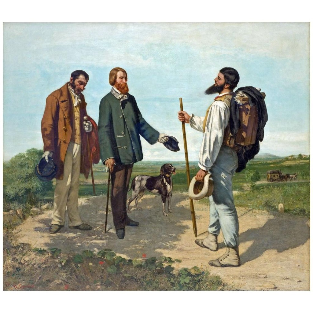 В 1840-х годах он написал большое количество автопортретов. Между 1844 и 1847 годами Курбе несколько раз посетил Ornans, путешествовал в Бельгию и Нидерланды, там установил контакт с продавцами живописи. Одним из покупателей его работ был нидерландский художник-маринист и коллекционер Хендрик Месдах (Hendrik Willem Mesdag). Это заложило основы широкой известности живописи Гюстава Курбе за пределами Франции. Примерно в это же время художник устанавливает связи в парижских артистических кругах. Он посещал кафе Brasserie Andler (находившееся около его мастерской), где собирались художники и поэты, в том числе Бодлер (Charles Pierre Baudelaire), основатель декаданса и символизма, французский художник Домье (Honoré Victorin Daumier) – крупнейший мастер политической карикатуры XIX и другие. В конце 1840-х годов академизм все еще был официальным направлением французской живописи, а работы художников реалистического направления устроители выставок не принимали. В 1847 году три картины Курбе, представленные в Салон, жюри отвергло, как и работы других известных художников Домье, Делакруа (Eugène Delacroix) и Руссо (Théodore Rousseau). Они решили объединиться и надеялись открыть свою галерею выставок, но из-за начавшейся революции в 1848 году их желание не осуществилось. Все 7 картин, представленных жюри, были выставлены в Салоне в 1848 году, но ни одна не была продана. В 1855 году Курбе в ответ на недоброжелательную критику, опубликовал свой знаменитый «Манифест реализма» (Manifeste du réalisme).