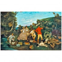 В том же году в Париже проходила 2 Всемирная выставка, там экспонировали около 5000 картин более чем 2000 художников. «Большое жюри» выставки приняло одиннадцать картин Курбе, но отвергло два самых значительных произведения: «Похороны в Орнане» (Funérailles à Ornans) и «Ателье художника» (L'Atelier du peintre). Тогда Курбе устроил выставку без государственного разрешения в период Второй Империи, в специально построенном здании «Павильон реализма», представив сорок картин. Выставку он сопроводил каталогом с текстом манифеста, «декларируя» право на свободу творчества и возможность лично показывать публике свои произведения. Зрители недоумевали, смеялись и возмущались «грубым искусством». А критика «издевалась» над художником. Но картины оценили Э. Делакруа и Ш. Бодлер, утверждавший, что вызов Курбе «произвёл впечатление взрыва». Его натурализм в жанровых картинах вызвал недоброжелательность в артистических и литературных кругах, в их числе был драматург и прозаик Дюма-сын. Но и множество поклонников, в их числе был известный политик, писатель, один из самых влиятельных теоретиков анархизма Прудон (Pierre-Joseph Proudhon).