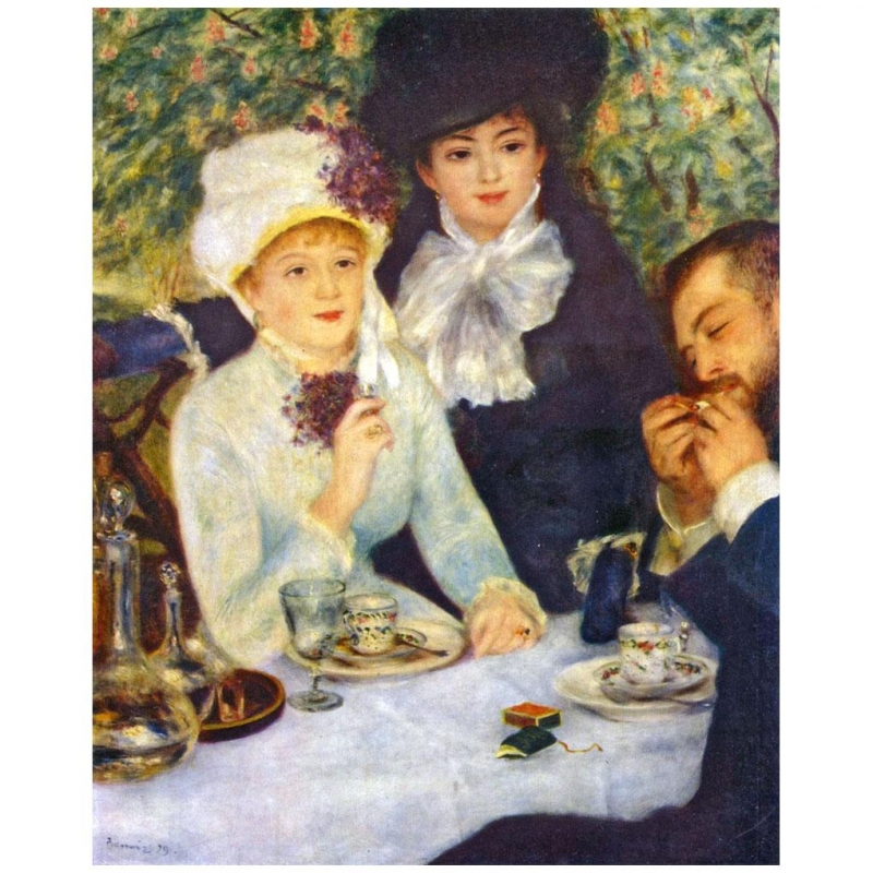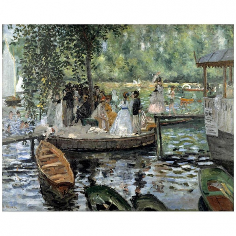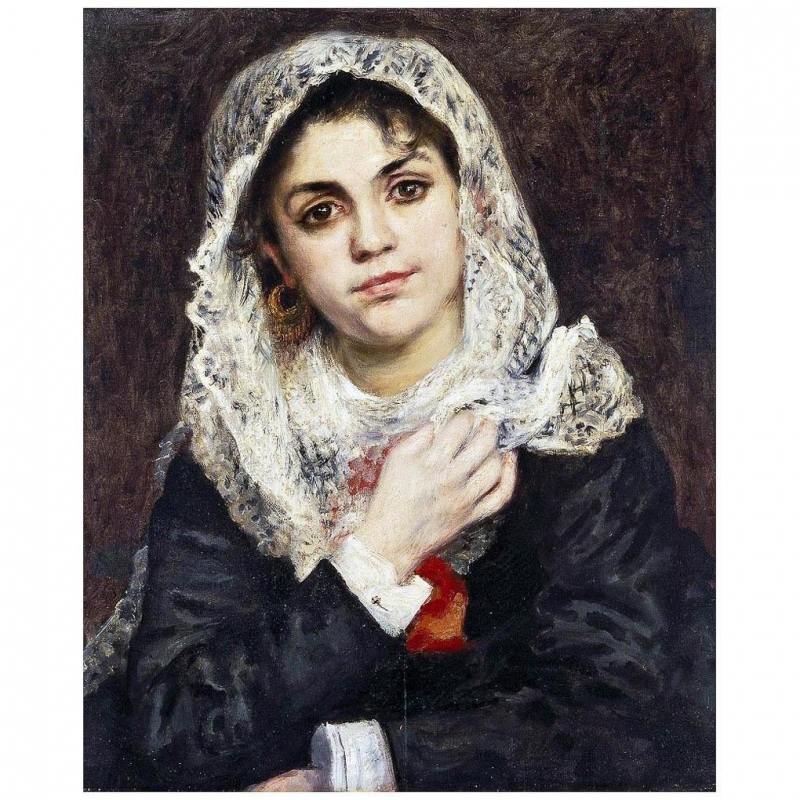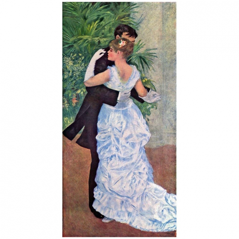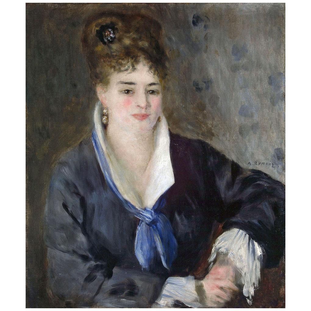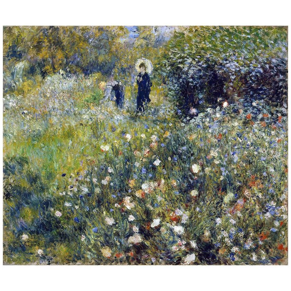 Пьер-Огюст Ренуар родился в Лиможе и был 6 ребёнком из 7 детей небогатого портного Леонарда Ренуара и его жены Маргариты. В 1844 году вся семья переехала в Париж. Здесь Огюст пел в церковном хоре в соборе Saint-Eustache. В 13 лет он начал расписывать у мастера фарфоровую посуду. Позже Ренуар учился живописи у художников Эмиля Синьоля (Émile Signol) и Шарля Глера (Charles Gleyre). В 1962 году он поступил в École des Beaux-Arts. Там он встретился с Анри Фантен-Латуром (Henri Fantin-Latour), Альфредом Сислеем (Alfred Sisley), Фредериком Базилем (Jean Frédéric Bazille), Клодом Моне (Claude Monet) и подружился с Полем Сезанном (Paul Cezanne) и Камилем Писсарро (Camille Pissarro). Уже тогда Ренуар «определил» жанры своих произведений: портреты, фигуры людей, обнаженная натура, танцы, театр, бытовые сцены, шум и суета большого города, пейзажи, натюрморт. В 1872 году Ренуар с друзьями создал «Анонимное кооперативное товарищество», их первая выставка открылась 15 апреля 1874 года. Художник представил шесть живописных полотен, в том числе, «Танцовщицу» и «Ложу». Выставку отвергли, а ее участников презрительно назвали «импрессионистами». В период 1874–1882 годов Ренуар создал знаменитые картины «Большие бульвары» (1875), «Прогулка» (1875), «Бал в Мулен де ла Галетт» (1876), «Обнажённая» (1876), «Обнажённая в солнечном свете» (1876), «Качели» (1876), «Первый выезд» (1876/1877), «Тропинка в высокой траве» (1877).