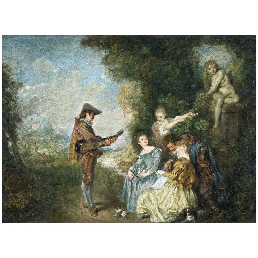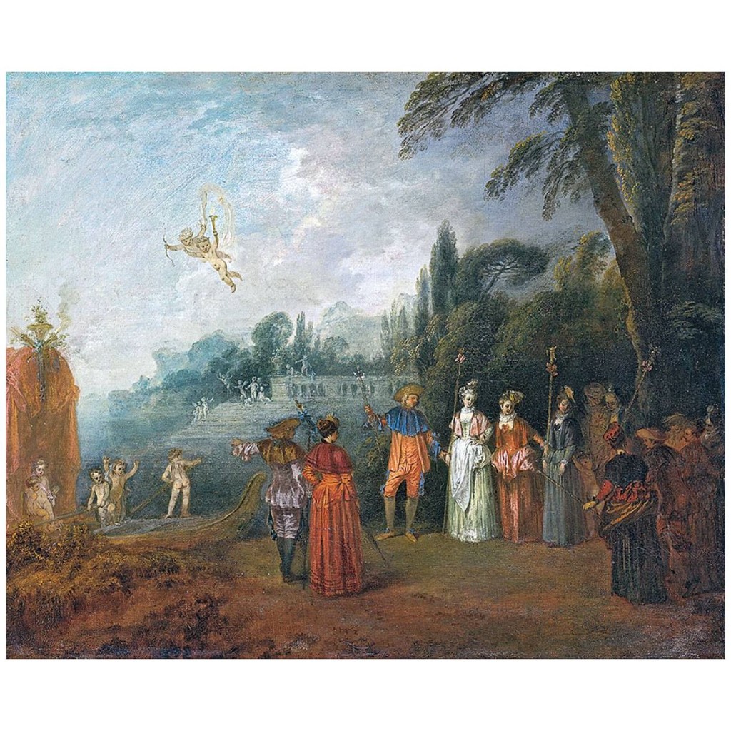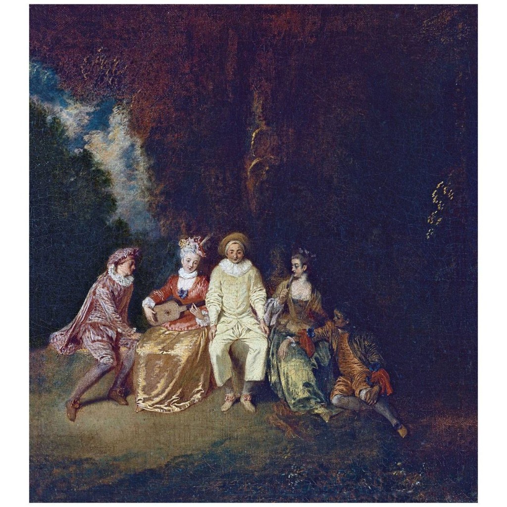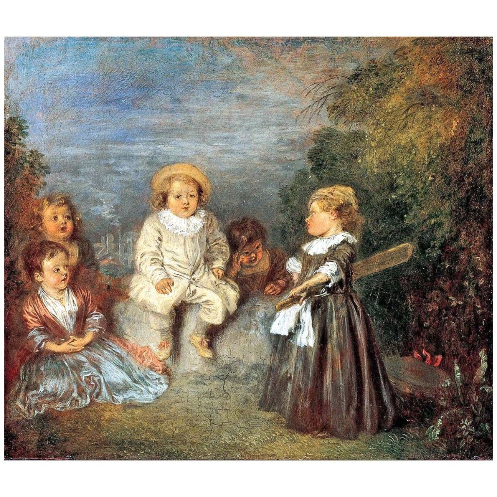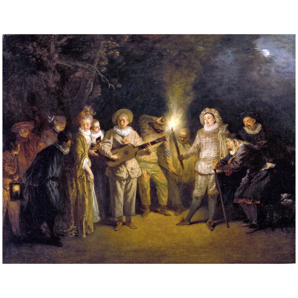 Жана Антуана Ватто крестили 10 октября 1684 года в Валансьене (Valenciennes). Он был вторым из четырёх сыновей потомственного кровельщика Жана Филиппа Ватто (Jean-Philippe Watteau) и его супруги Мишель Ларденуа (Michelle Lardenois). С раннего детства Антуан увлекся рисованием и стал учеником местного живописца Жерена (Jacques-Albert Gérin). Ватто, которому в то время было лет десять-одиннадцать, учился с таким увлечением, что через несколько лет наставник уже перестал ему быть полезен. Антуан Ватто против воли отца, между 1700 и 1702 годами, тайно покидает Валансьен и, при отсутствии средств, пешком добирается до Парижа. Достоверно известно, что вскоре после прибытия в Париж, Антуан нанимается в мастерскую живописи на мосту Нотр-Дам. Там он работал, копируя популярные картины, но все свободное время рисовал с натуры, что подтверждало его исключительное трудолюбие. В 1704 году у Ватто появился первый покровитель – Пьер Мариэтт (Pierre-Jean Mariette) – французский меценат, гравёр, издатель, коллекционер. У него Ватто познакомился с гравюрами Рембрандта, рисунками Тициана, эстампами Рубенса. При посредничестве Мариэта Ватто становится учеником художника Жилло (Claude Gillot), мастера театральных декораций и автора картин со сценами итальянской комедии. От периода ученичества у Жилло сохранилось лишь несколько картин Ватто, в которых ещё с трудом угадываются черты его будущего стиля: «Арлекин – император Луны» и «Сатира на врачей».