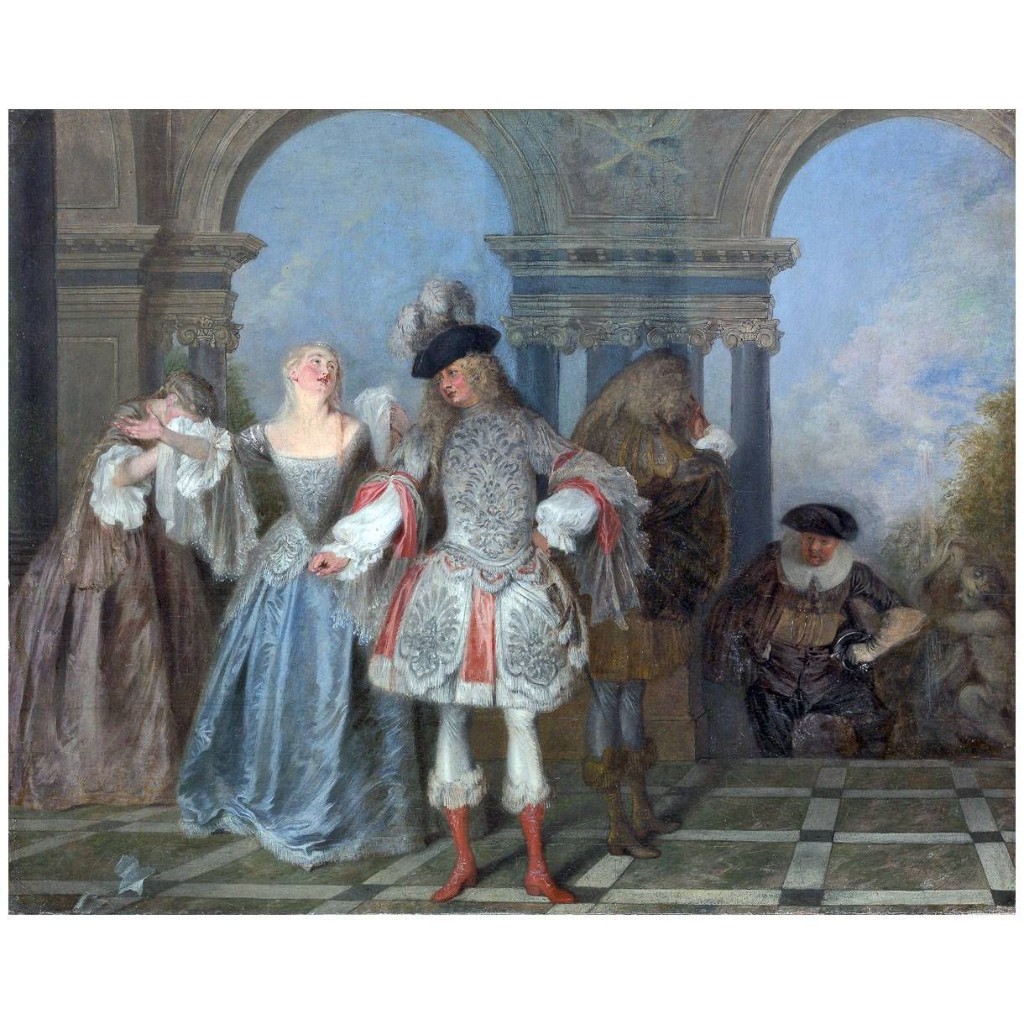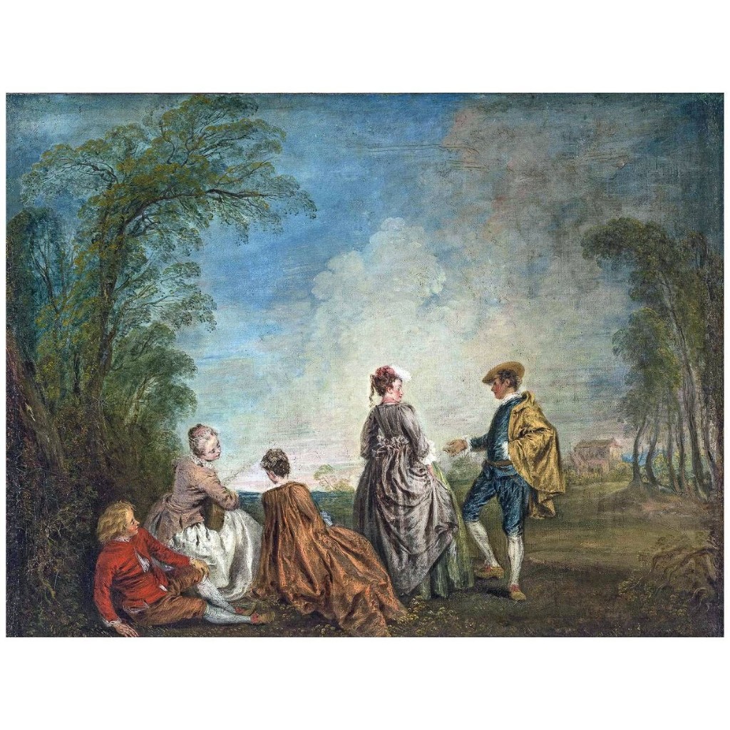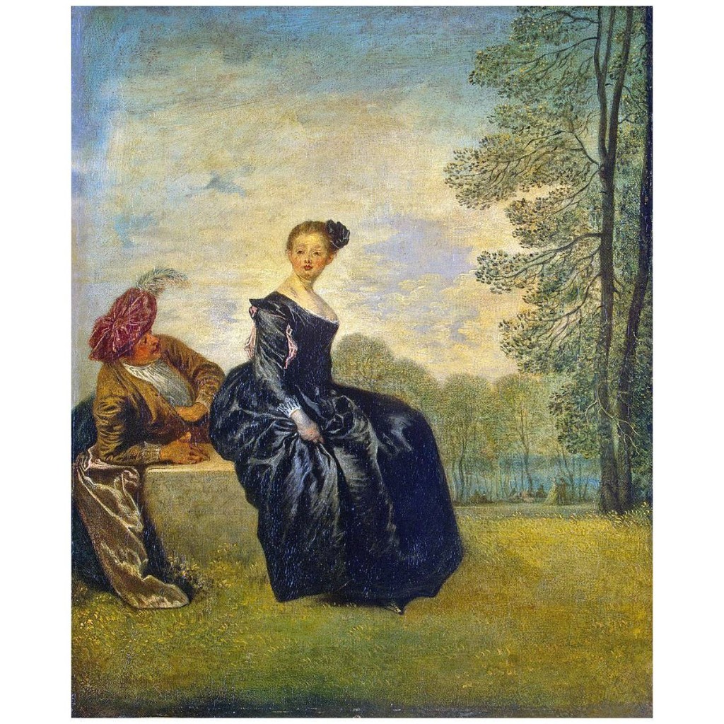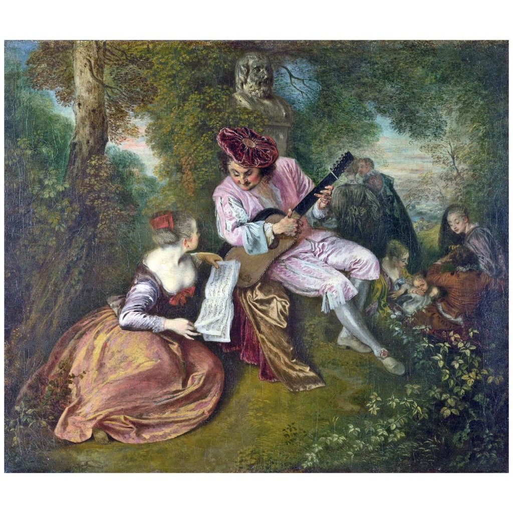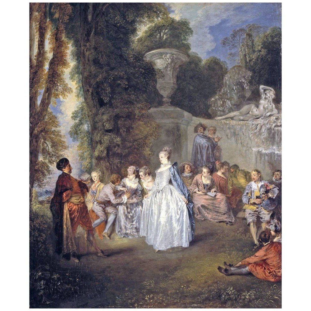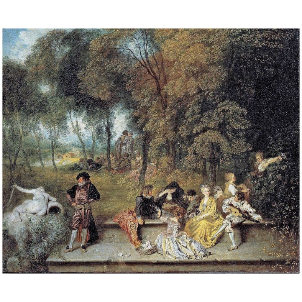 Жана Антуана Ватто крестили 10 октября 1684 года в Валансьене (Valenciennes). Он был вторым из четырёх сыновей потомственного кровельщика Жана Филиппа Ватто (Jean-Philippe Watteau) и его супруги Мишель Ларденуа (Michelle Lardenois). С раннего детства Антуан увлекся рисованием и стал учеником местного живописца Жерена (Jacques-Albert Gérin). Ватто, которому в то время было лет десять-одиннадцать, учился с таким увлечением, что через несколько лет наставник уже перестал ему быть полезен. Антуан Ватто против воли отца, между 1700 и 1702 годами, тайно покидает Валансьен и, при отсутствии средств, пешком добирается до Парижа. Достоверно известно, что вскоре после прибытия в Париж, Антуан нанимается в мастерскую живописи на мосту Нотр-Дам. Там он работал, копируя популярные картины, но все свободное время рисовал с натуры, что подтверждало его исключительное трудолюбие. В 1704 году у Ватто появился первый покровитель – Пьер Мариэтт (Pierre-Jean Mariette) – французский меценат, гравёр, издатель, коллекционер. У него Ватто познакомился с гравюрами Рембрандта, рисунками Тициана, эстампами Рубенса. При посредничестве Мариэта Ватто становится учеником художника Жилло (Claude Gillot), мастера театральных декораций и автора картин со сценами итальянской комедии. От периода ученичества у Жилло сохранилось лишь несколько картин Ватто, в которых ещё с трудом угадываются черты его будущего стиля: «Арлекин – император Луны» и «Сатира на врачей».