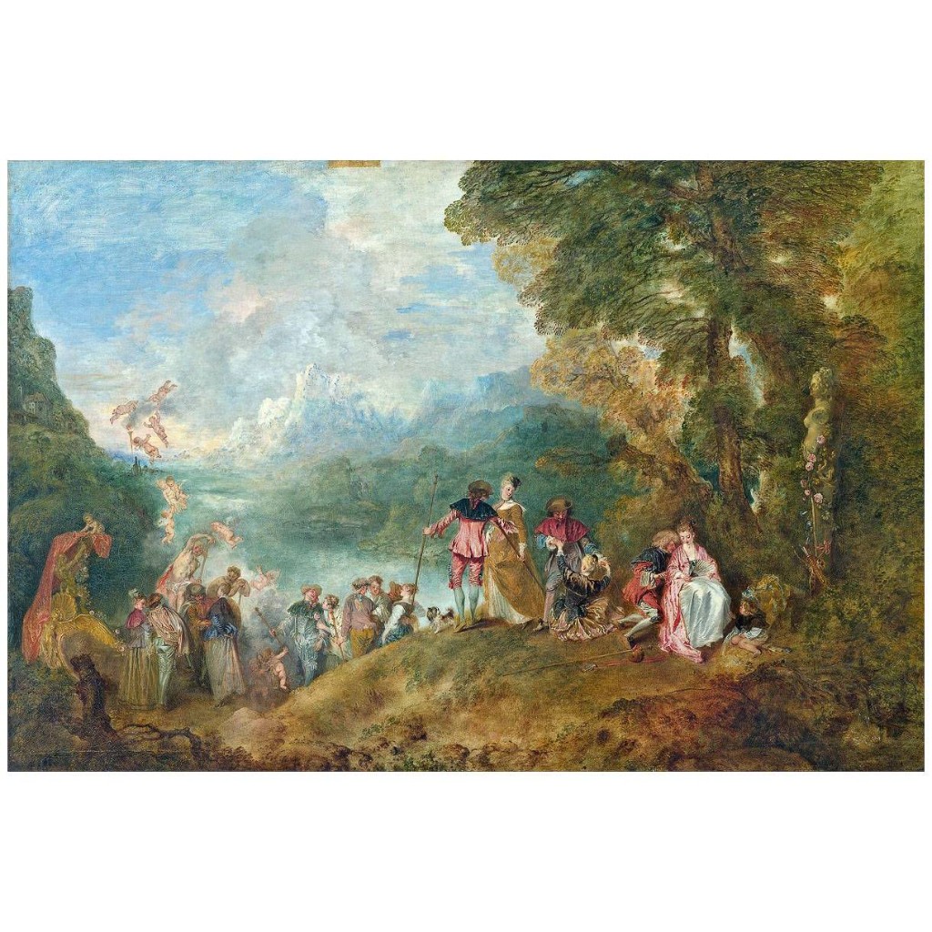 Вершина творчества художника – 1716–1721 годы. К 1717 году обязательная работа для поступления в Академию «Паломничество на остров Киферу» была выполнена. Ей присвоили специальный статус «галантное празднество». Так Академия особо отметила заслуги художника, и Ватто избрали в полные члены Академии. Однако, здоровье Ватто ухудшалось. В конце 1719 года он уезжает в Англию в надежде справиться с туберкулёзом с помощью известного лондонского врача Ричарда Мида и берёт с собой несколько картин. В Англии картины Ватто имели большой успех, однако лечение не дало заметных результатов, лондонский климат лишь обострил его тяжёлое состояние. Возвратившись в Париж летом 1720 года тяжело больным, Ватто поселился у своего друга Жерсена (Edme-François Gersaint), купившего антикварную лавку «Le grand monarque» на мосту Нотр-Дам. И предложил написать картину-вывеску для его нового заведения. Полотно изображает просторную лавку, превращённую по воле художника в открытую сцену, выходящую прямо на парижскую мостовую. Художница Розальба Каррьера, переехавшая недавно в Париж по приглашению Пьера Крозá, отмечала в дневнике, что 9 февраля была у Ватто «с ответным визитом». По-видимому, тогда же ею был написан пастелью портрет Антуана Ватто, который ей заказал всё тот же Крозá. Великий художник Антуан Ватто скончался от туберкулеза 18 июля 1721 года в возрасте 36 лет во французском городе Ножан-сюр-Марн. Творчество Ватто высоко ценили представители импрессионизма – живописцы Мане и Ренуар, скульптор Роден и композитор Дебюсси, создавший по мотивам «Паломничества на остров Киферу» фортепианную пьесу «Остров радости». Память Антуана Ватто увековечена монументами в Париже и Валансьене.