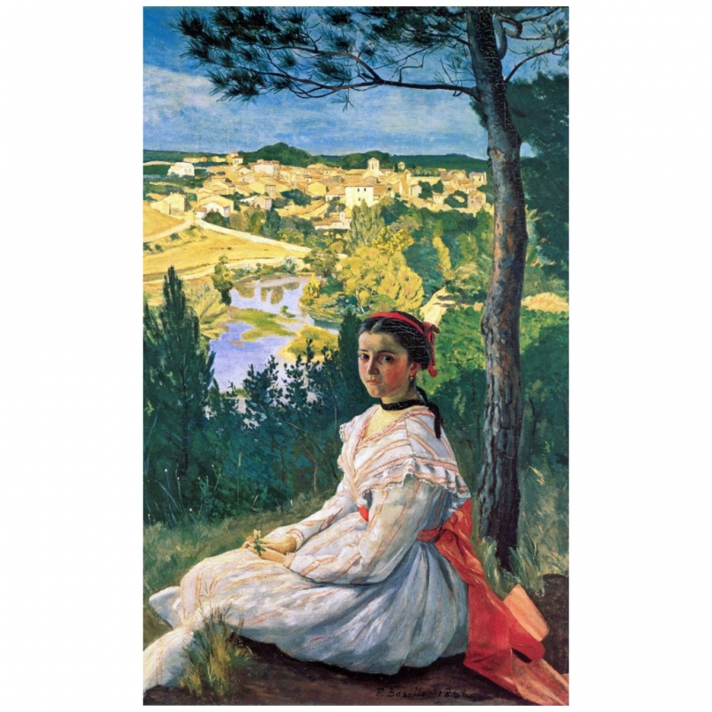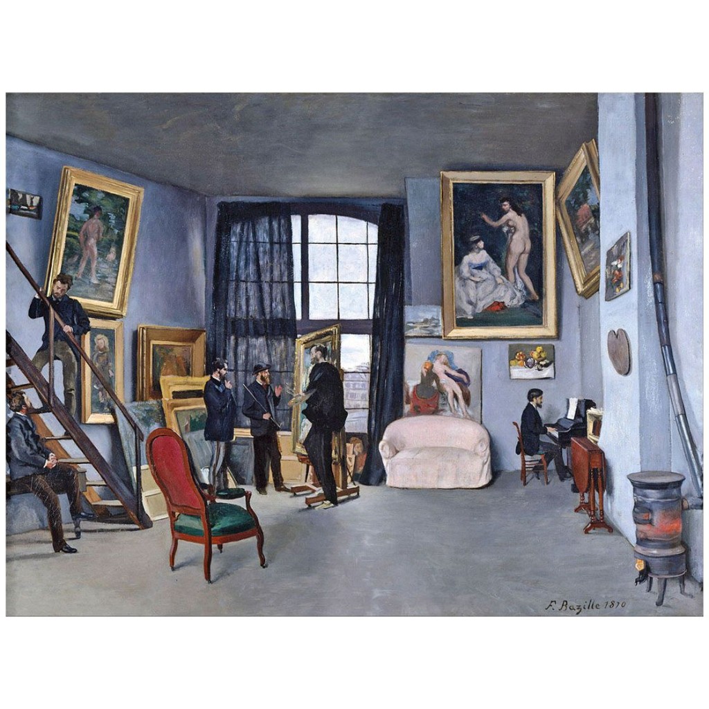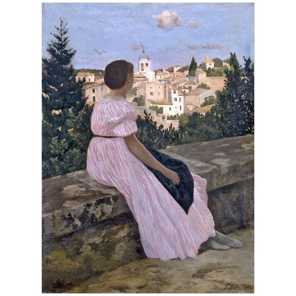 Базиль любил работать на пленэре. Любимым сюжетом его было изображение человека на фоне природы. Конечно, он не был импрессионистом, никто тогда не был импрессионистом, но интерес к свету и цвету, умелая работа с палитрой, яркие, насыщенные солнцем краски – это всё присутствовало в его работах. Причем он был ценителем не влажных переливов мягкого цвета, его стихия – яркий, даже резкий солнечный свет, это не рассвет и не закат, солнце Базиля в зените. Новатор в поисках формы, чутко слышащий современные тенденции, по сути, он оставался традиционным художником. Его изображения – не мимолетные впечатления, напротив, Базиль сам говорил, что хочет «вернуть каждой вещи ее вес и объем, а не только изобразить видимость вещей». В 1866 году Базиль впервые отправил свою работу «Девочка у пианино» на парижский Салон, но ее не приняли, взяли только небольшой натюрморт с рыбой. С тех пор он ежегодно предлагал свои картины, принимали далеко не все, но некоторые размещали на видном месте.