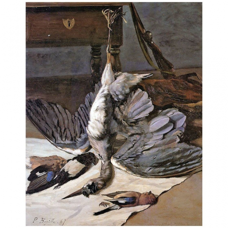 В 1868 году Ренуар написал портрет Базиля, сидящего за мольбертом. Клоду Мане очень понравился портрет, и Ренуар его подарил ему. Размышляя о живописи, Базиль писал родным: «…Я выбрал современную жизнь, потому что лучше всего понимаю ее, выбрал то, что представляет наиболее живой интерес для людей живых…» Он и старался писать людей – друзей и близких. Кто, кроме него, мог так живо схватить фигуру сидящего, словно на иголках Ренуара. Или сыграть на контрастах розового и черного («Розовое платье», 1864). Отличавшийся неподдельной скромностью, Базиль «вписал свою семью» в историю искусства, изобразив их в «рамках импрессионистического пейзажа («В кругу семьи», 1867). Впрочем, разве мог он знать, что импрессионизм войдет в историю? Вполне возможно, он стал бы самым главным и успешным импрессионистом. Если бы не Франко-прусская война. Во время Франко-прусской войны (1870–1871) Фредерик Базиль ушел добровольцем на фронт. Он погиб 28 ноября 1870 года, не дожив неделю до своего 29-летия, в битве под Beaune-la-Rolande. Семья живописца Фредерика Базиля в 1868 году передала Музею Фабра ряд произведений художников-импрессионистов. Мы были в Монпелье в ноябре 2017 года и сделали в Музее Фабра фотографии некоторых работ Фредерика Базиля.