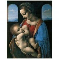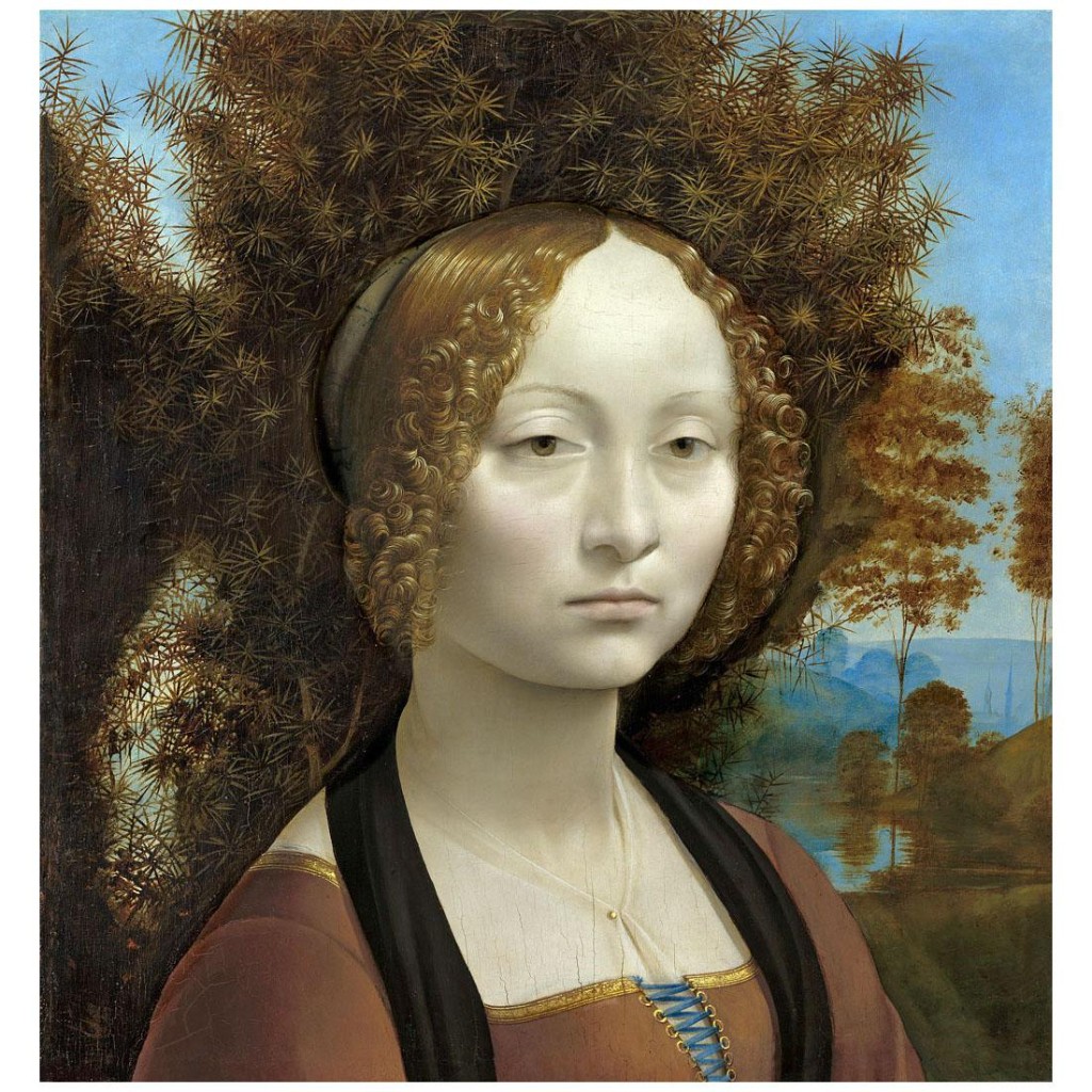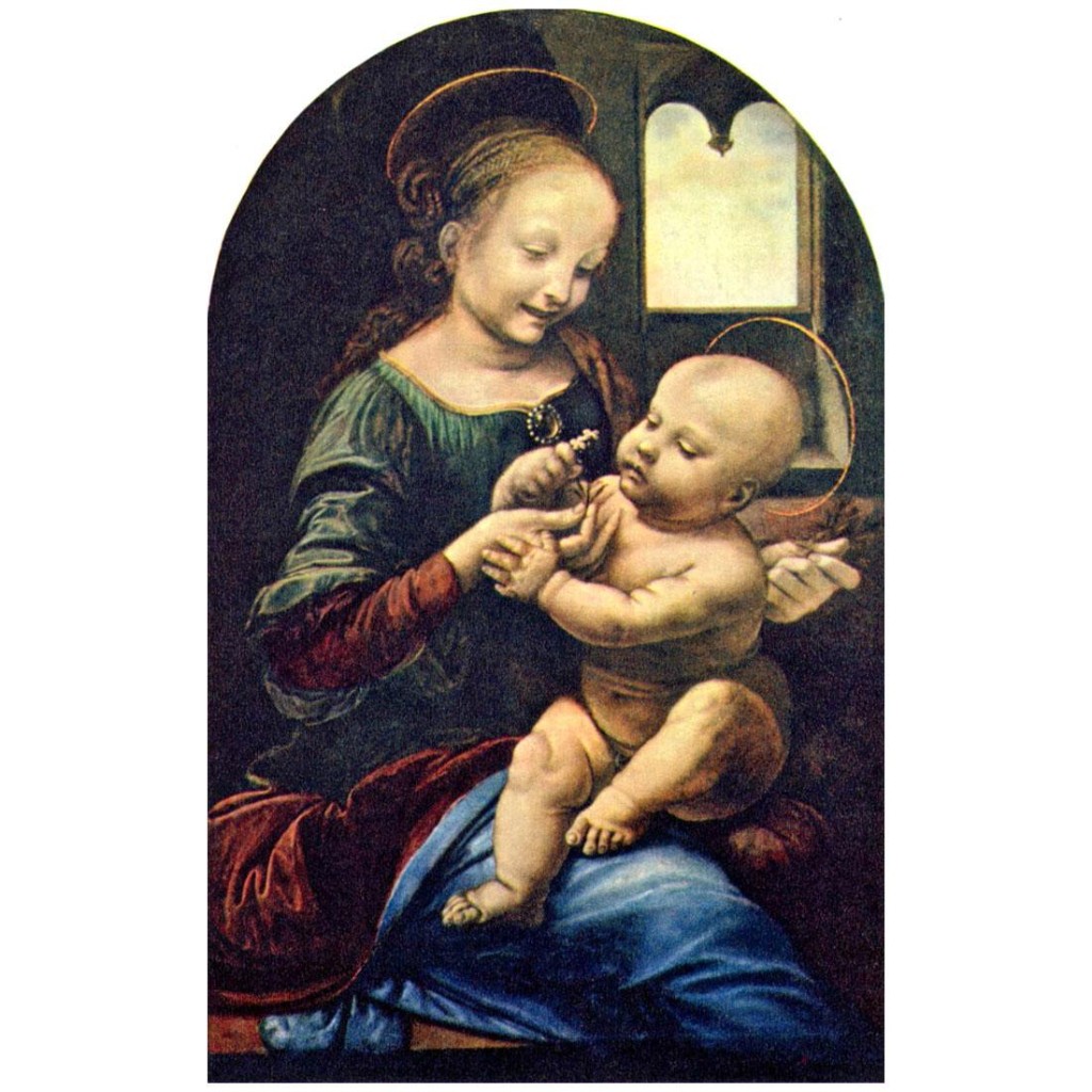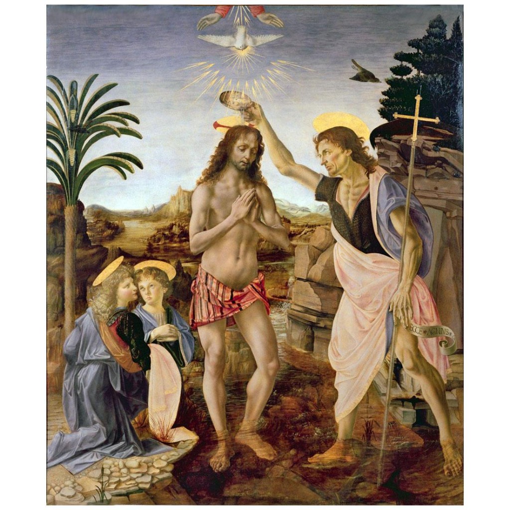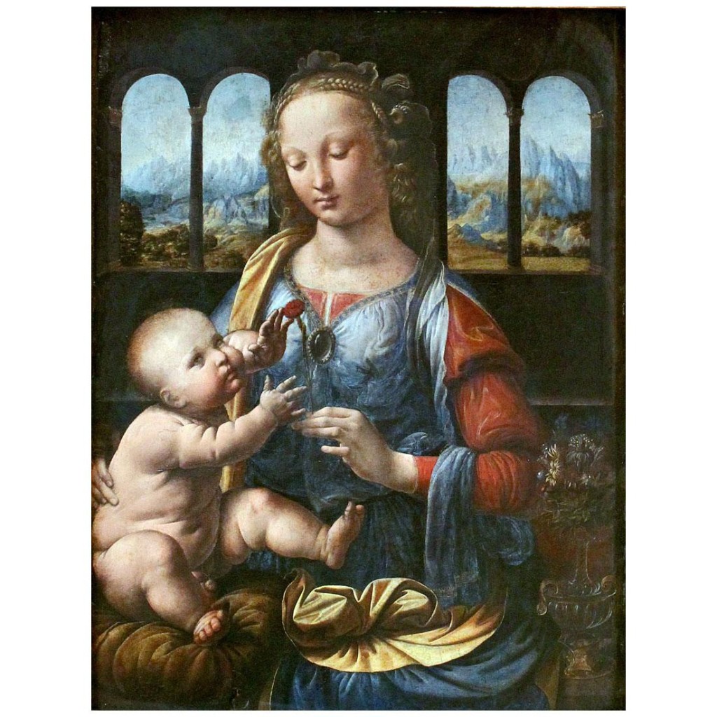 Леонардо родился в маленькой деревне Анкиано (Anchiano), недалеко от городка Винчи (Vinci). Его родителями были нотариус Пьеро (Piero da Vinci) и крестьянка Катарина (Katarina). Вскоре после этого события нотариус заключил брак с девушкой знатного происхождения. Детей у них не было, и Пьеро с женой взяли трехлетнего ребенка к себе. Разлученный с матерью Леонардо всю жизнь пытался воссоздать её образ в своих шедеврах. После переезда во Флоренцию в 1466 году Леонардо да Винчи поступает в мастерскую учеником Вероккьо (Andrea del Veroccio). Там, помимо живописи и скульптуры, у будущего художника появилась возможность изучить основы математики и механики, анатомию, работу с металлами и гипсом, способы выделки кож. В мастерской, кроме Леонардо, обучались Перуджино, Лоренцо ди Креди, Аньоло ди Поло, Сандро Боттичелли, часто бывал Гирландайо. Со временем, Вероккьо стал поручать талантливому ученику выполнение деталей на своих работах. Их последним совместным произведением стала знаменитая картина «Крещение Христа» (Il battesimo di Cristo), на которой кисти Леонардо да Винчи принадлежит фигура ангела и пейзаж на заднем плане.
