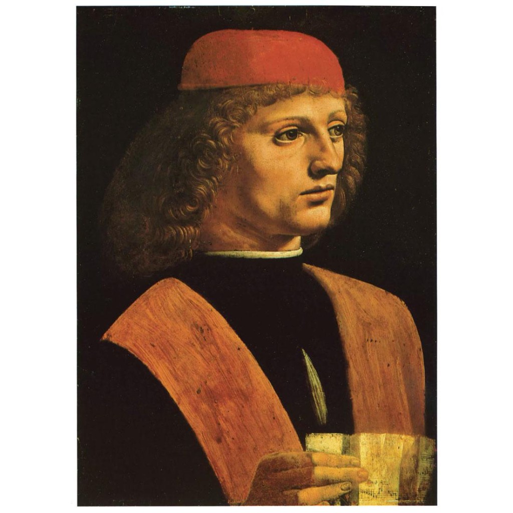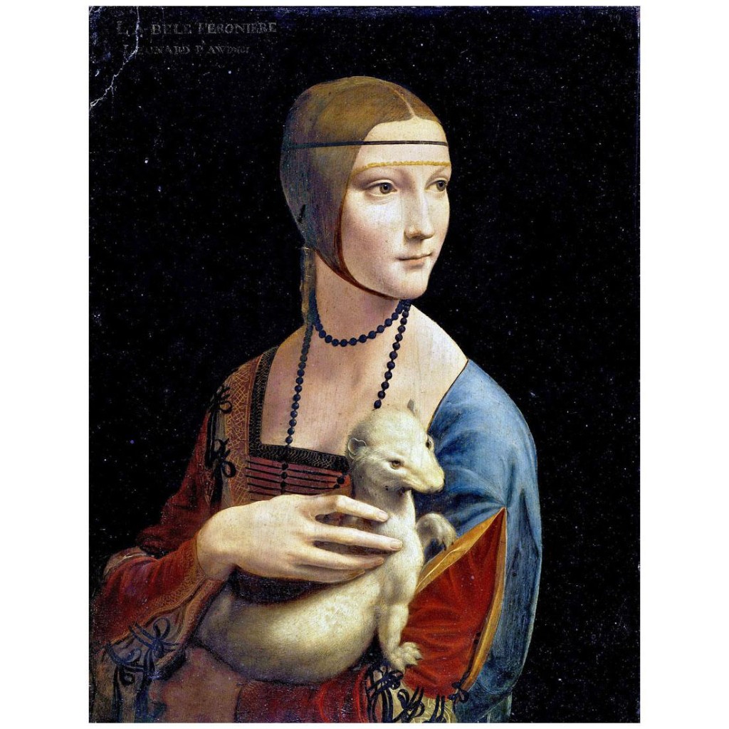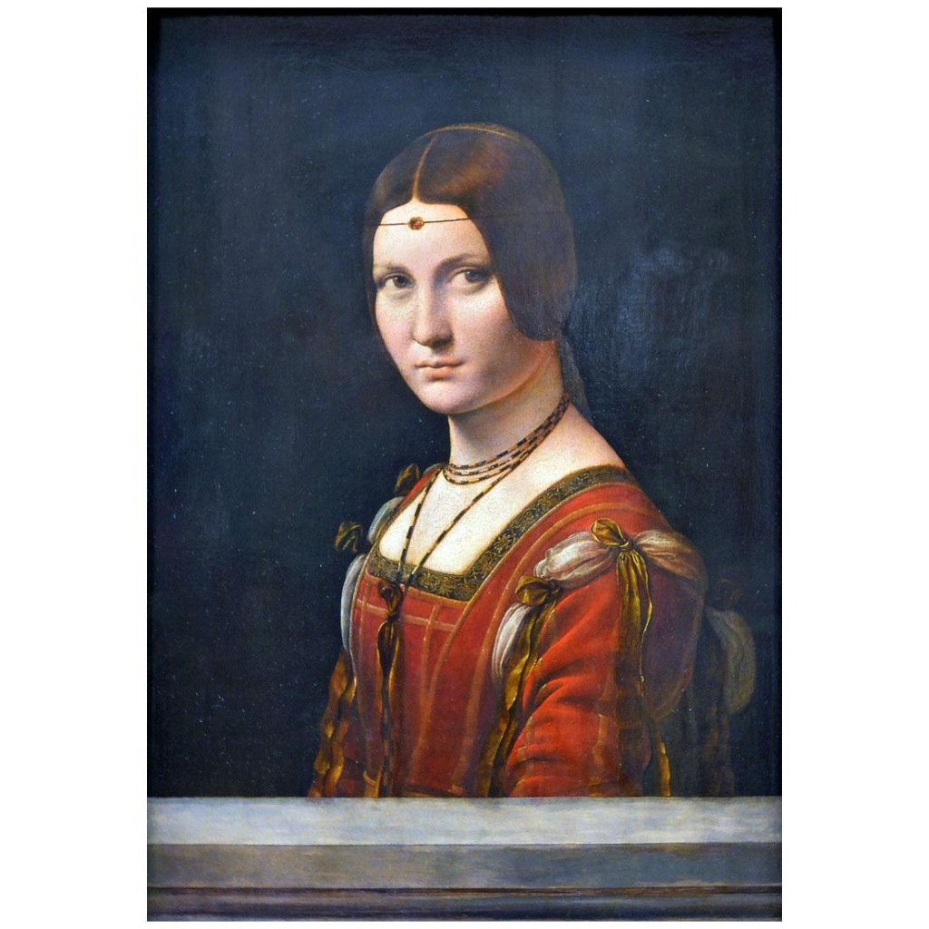В Милане его зачислили в придворный штат как инженера. Моро были нужны инженерные приспособления для военных действий и механические сооружения для увеселений двора. Леонардо разбирался в этом как никто другой. К тому же периоду относятся две важные работы художника. Фреска «Тайная вечеря» (Ultima cena) для трапезной монастыря Санта Мария делла Грацие (Chiesa e Convento Domenicano di Santa Maria delle Grazie) и картина «Дама с горностаем» (Dama con l’ermellino). Это портрет Цецилии Галлерани (Cecilia Gallerani), красивой, ученой и доброй. Моро также заказал мастеру конную статую Франческо Сфорца (Francesco Sforza). Леонардо выполнил необходимые эскизы и изготовил глиняную модель будущего памятника, но вторжение французов в Милан прервало эту работу. Художник возвратился во Флоренцию (1499–1506). Там он поступил на службу к герцогу Чезаре Борджиа (Cesare Borgia) и создал самое знаменитое полотно – «Джоконда» (La Gioconda).