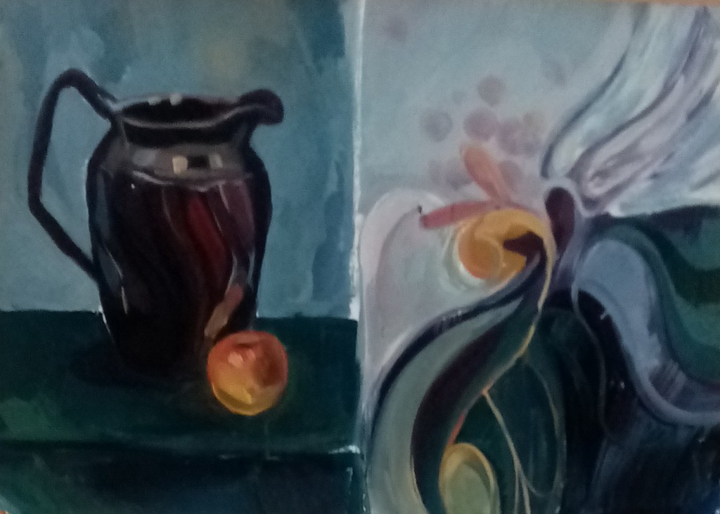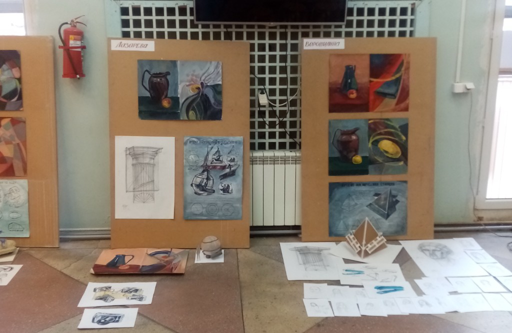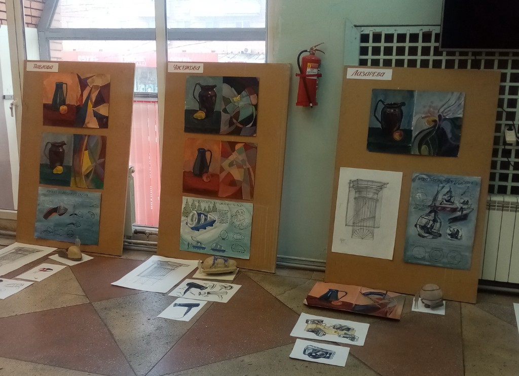 Основы проектной графики представлены скетчингом с навигацией и текстовым сопровождением. По живописи представлены цвето-графические трактовки натурных объектов. Суть задания в реалистическом изображении натюрморта с его абстрактной интерпретацией.