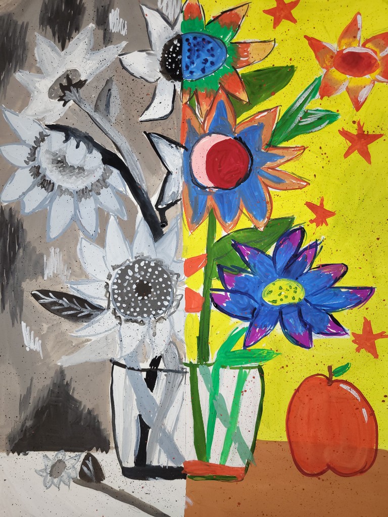 Юные художники в возрасте 9-11 лет представили своё видение классического натюрморта "Кувшин с цветами" через призму детского восприятия и творческой фантазии.