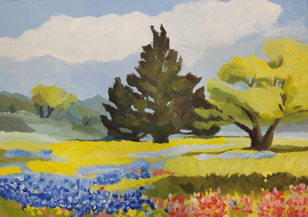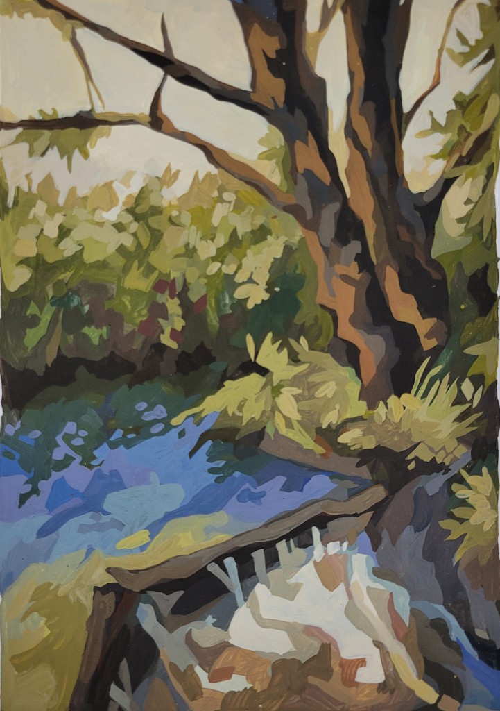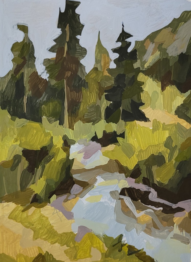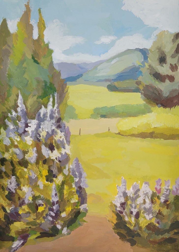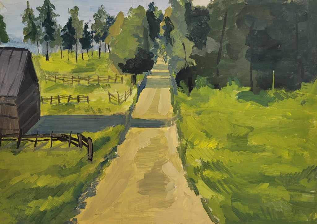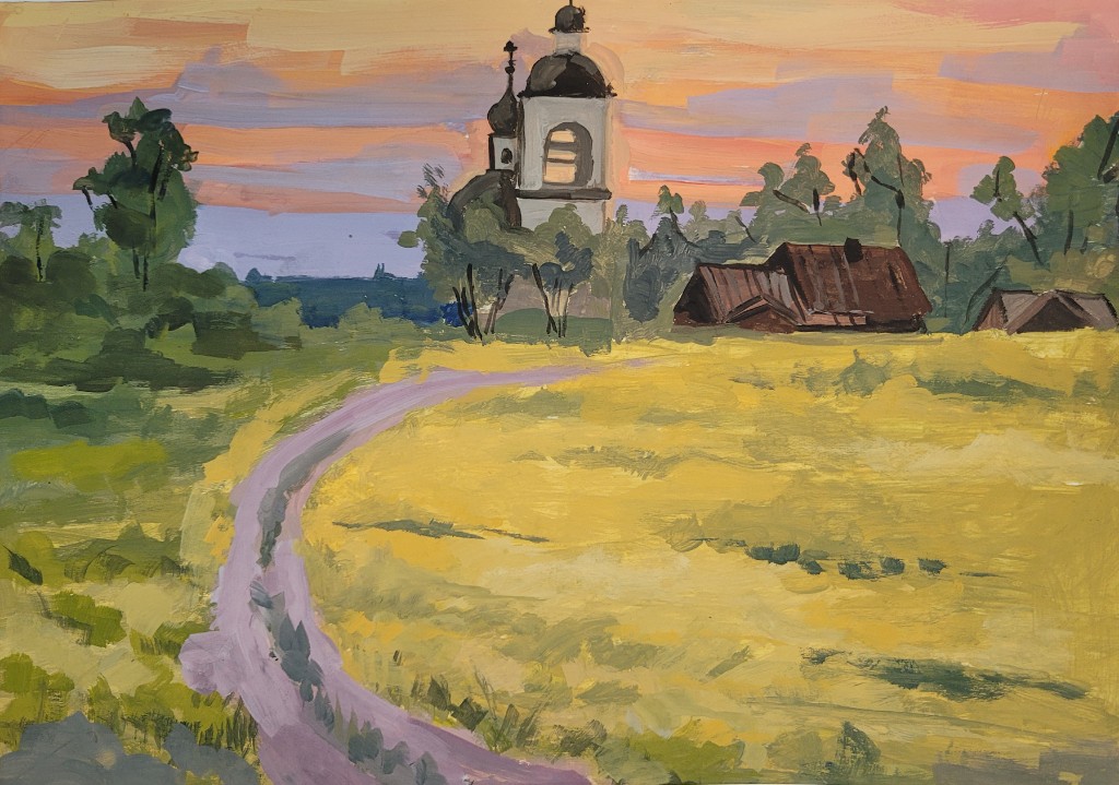 В работах, выполненных гуашью, мы видим смелость, сочность, уверенные мазки. Эта техника позволяет юным авторам не бояться ошибок, работать энергично и решительно, накладывать цвет на цвет, создавая плотную, материальную живописную среду. Их гуашевые пейзажи часто полны жизнеутверждающей силы и яркого, почти сказочного колорита.