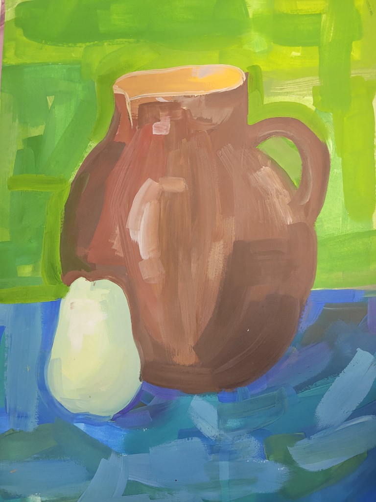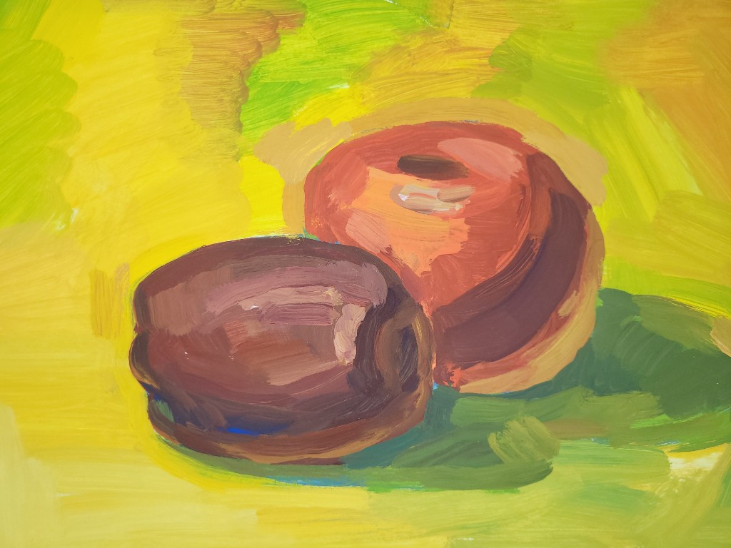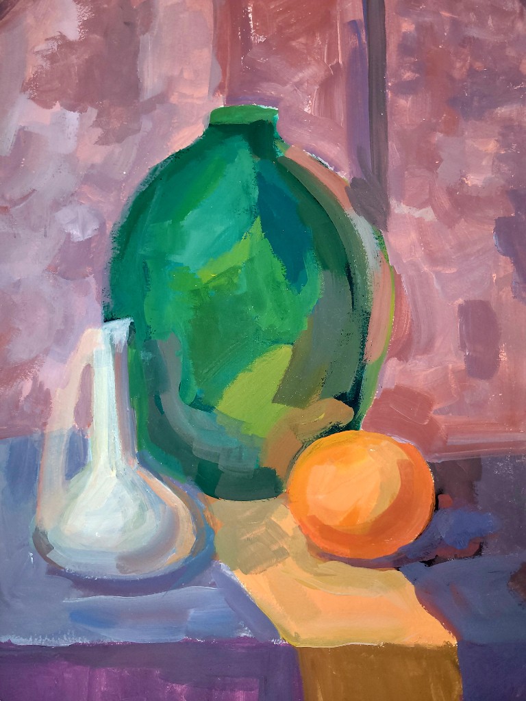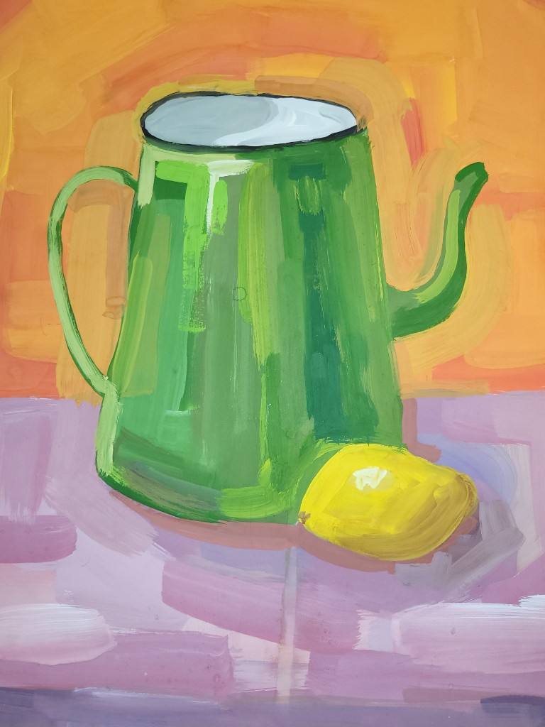 Гуашь, с её бархатистой текстурой и способностью к плотному перекрытию, позволила юным художникам передать сочность спелых плодов, фактуру кожуры и игру бликов на поверхностях. В экспозиции соседствуют быстрые этюды, фиксирующие первое впечатление, и более сложные постановки, где продумана драматургия света и тени. Гранаты, яблоки, цитрусовые и виноград становятся поводом для изучения цвета и объёма. Каждая работа — шаг к пониманию того, как форма рождается из пятна, а реалистичность достигается через смелые сочетания гуашевых оттенков.
