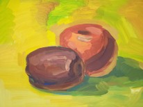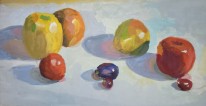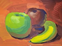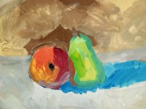 Фрукты, овощи и ягоды в детских рисунках перестают быть просто предметами на столе — они превращаются в героев художественных историй. Учащиеся 10–14 лет представляют цикл работ, выполненных гуашью в жанре натюрморта.