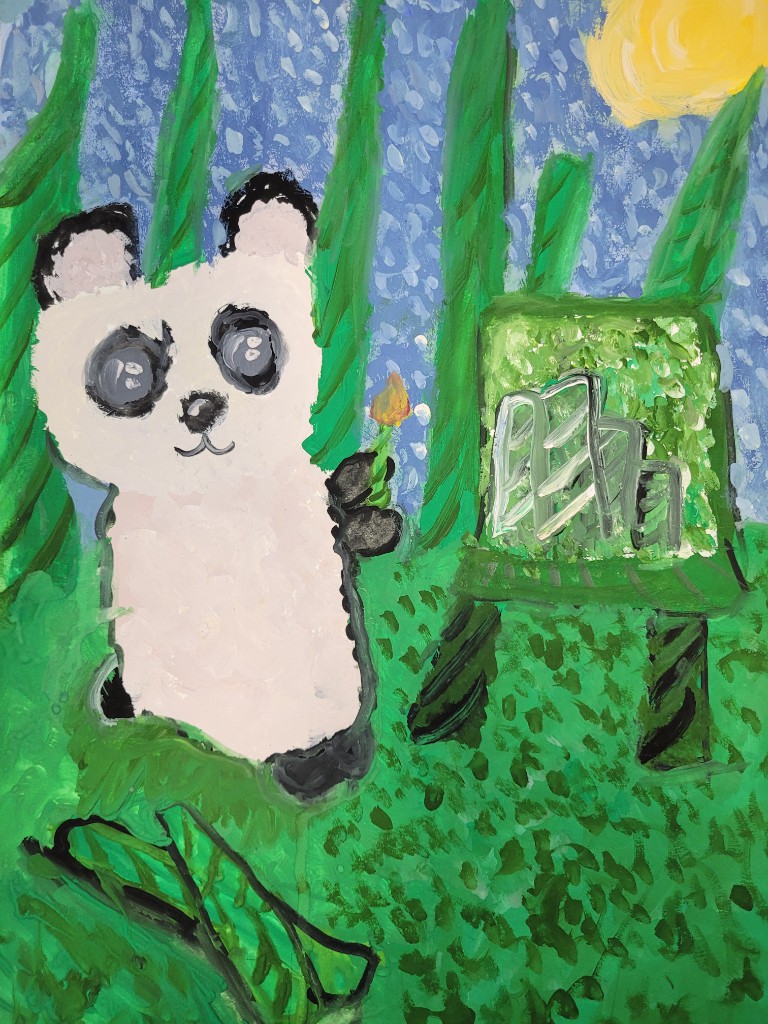 Лесные и саванные обитатели предстают в работах юных художников 8–13 лет. В экспозиции собраны изображения медведей, панд, сов, лис, оленей, тигров и других диких животных, выполненные гуашью. Гуашевая техника позволила передать фактуру шерсти, оперения и характерные особенности каждого зверя: от мощи медведя до трогательности панды. Детские работы отличаются вниманием к повадкам животных и стремлением показать их в естественной среде — у лесного ручья, в заснеженных горах или среди бамбуковых зарослей. Каждый рисунок становится маленьким исследованием мира фауны, где искренность взгляда сочетается с первыми профессиональными навыками работы с цветом и формой.