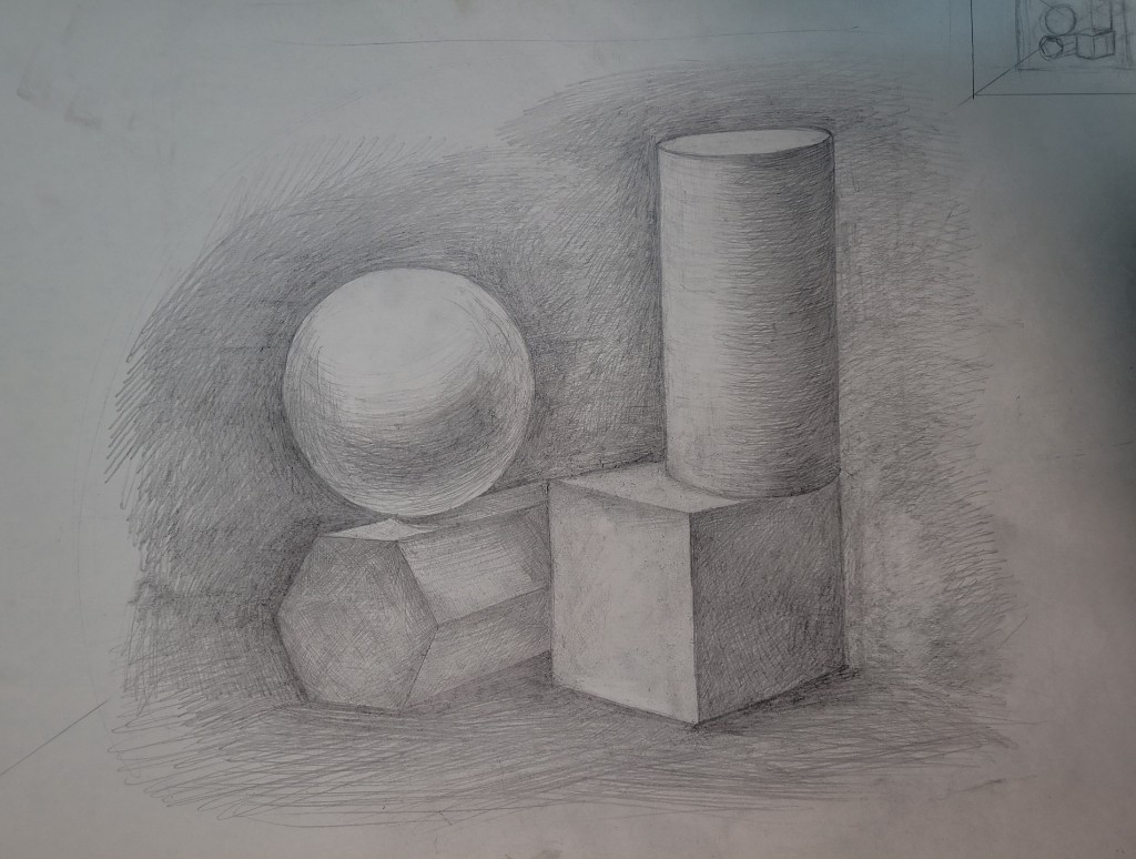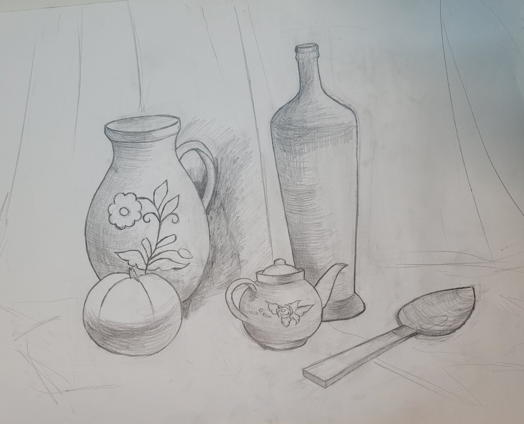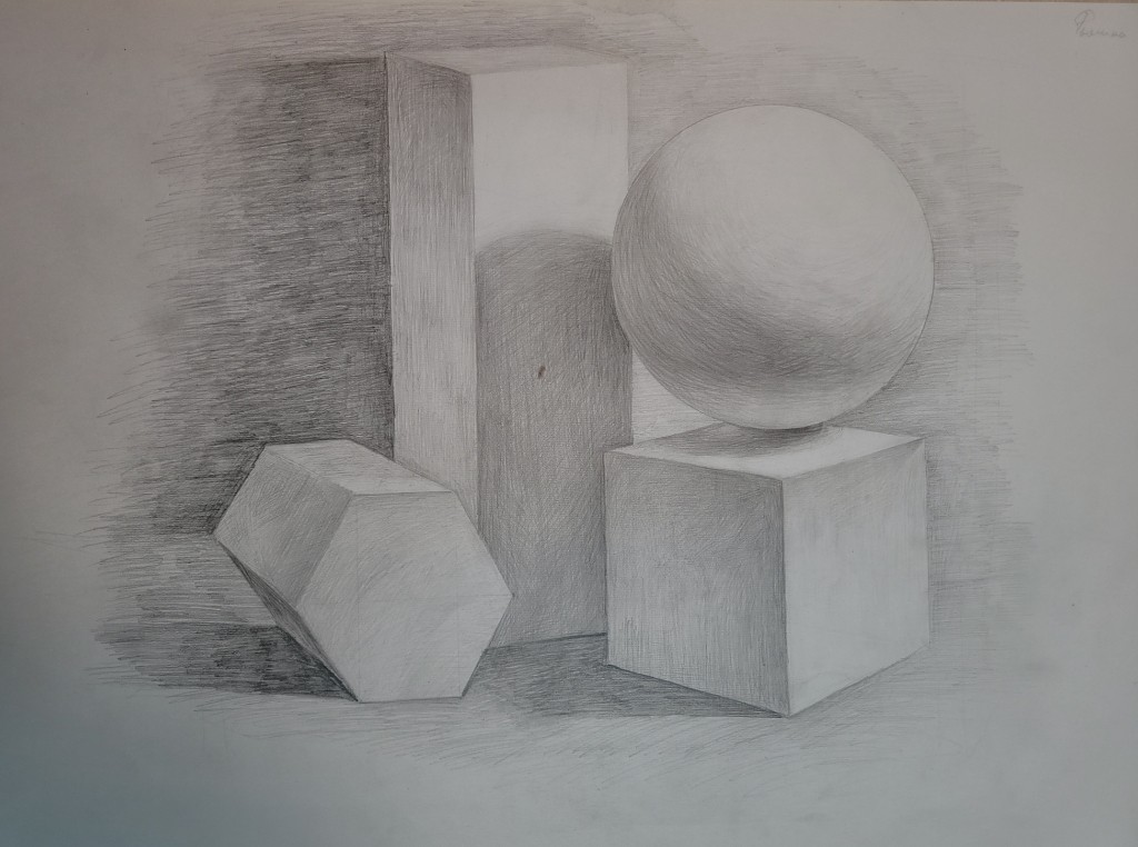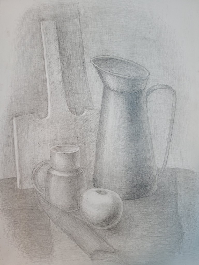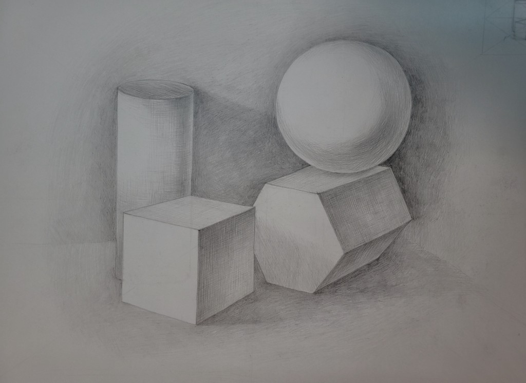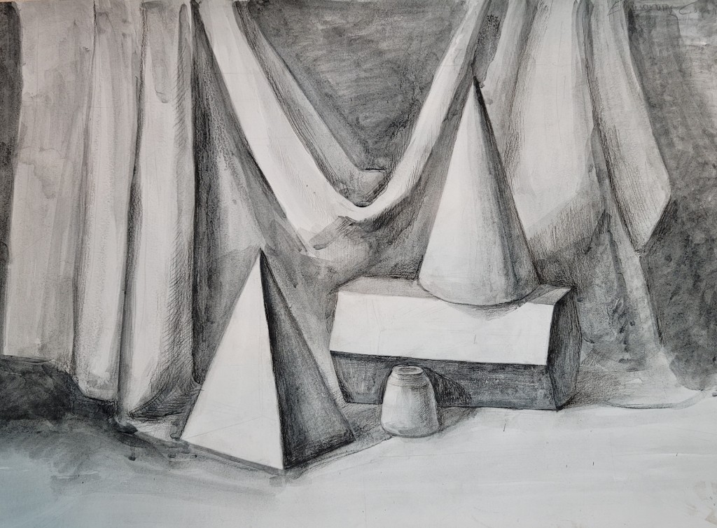 Работы созданы в техниках простого карандаша и соуса. Эти материалы позволили юным авторам решать сложные тональные задачи: от мягкой светотеневой моделировки до жесткой пластической проработки формы. В экспозицию вошли натюрморты из бытовых предметов, демонстрирующие понимание фактур и материальности, а также натюрморты из гипсовых фигур, где от учащихся требовалось точное конструктивное построение и владение анатомическими основами. Каждый лист — результат серьезной академической работы и шаг в освоении профессионального графического языка