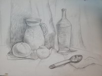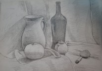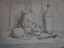В экспозиции представлены учебные постановки, выполненные учащимися 5 класса (15–16 лет) под руководством преподавателя В.Н. Соломатина. Возрастная группа — старшие классы художественной школы, где особое внимание уделяется академическому рисунку.