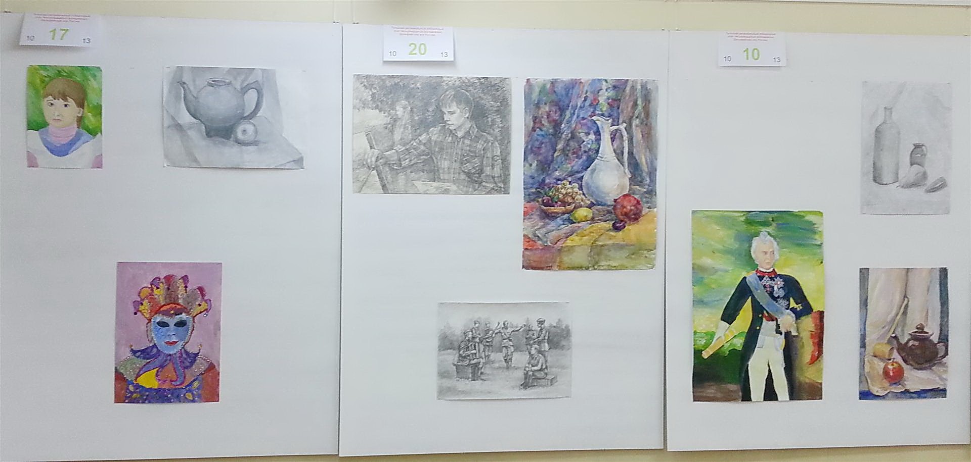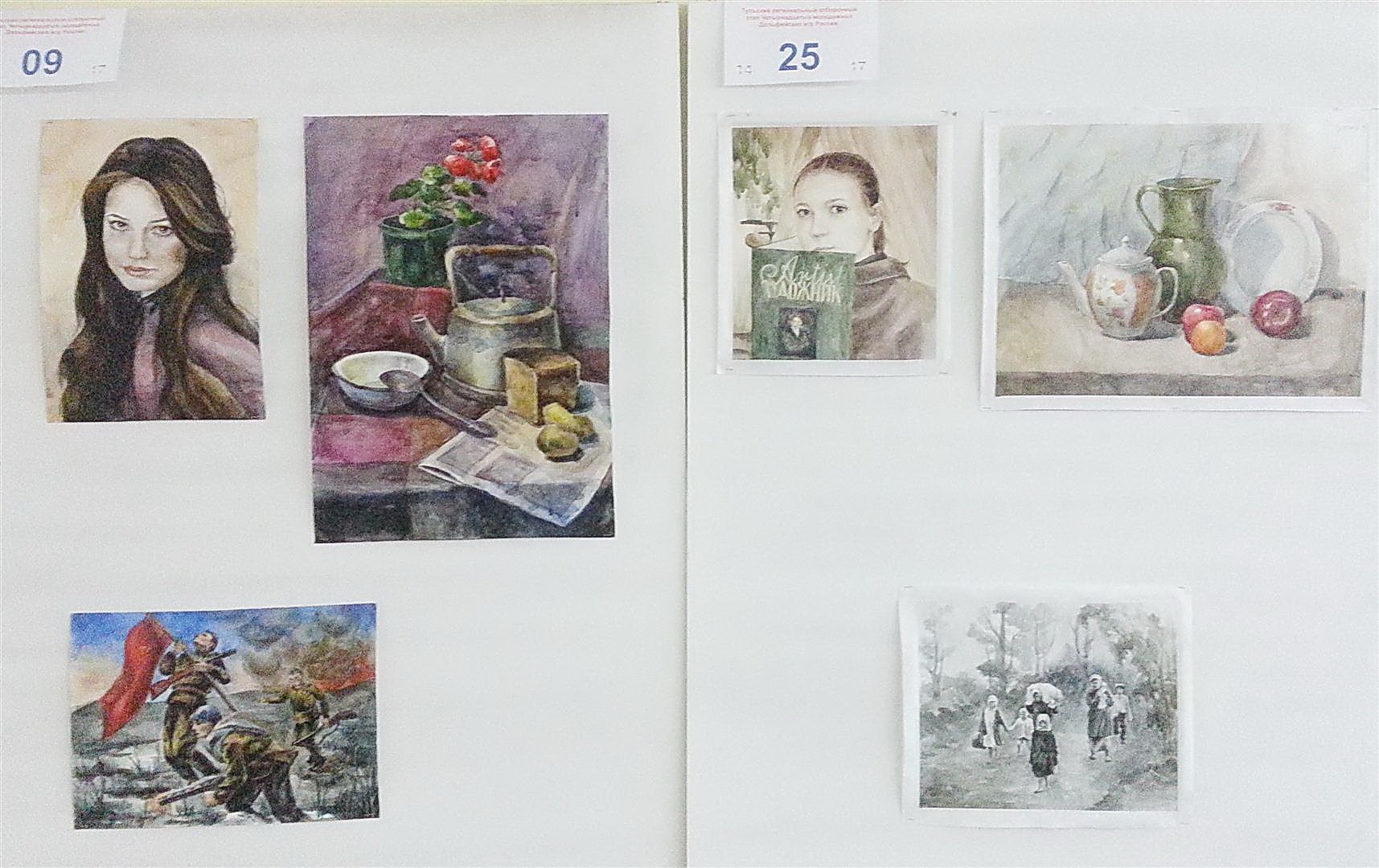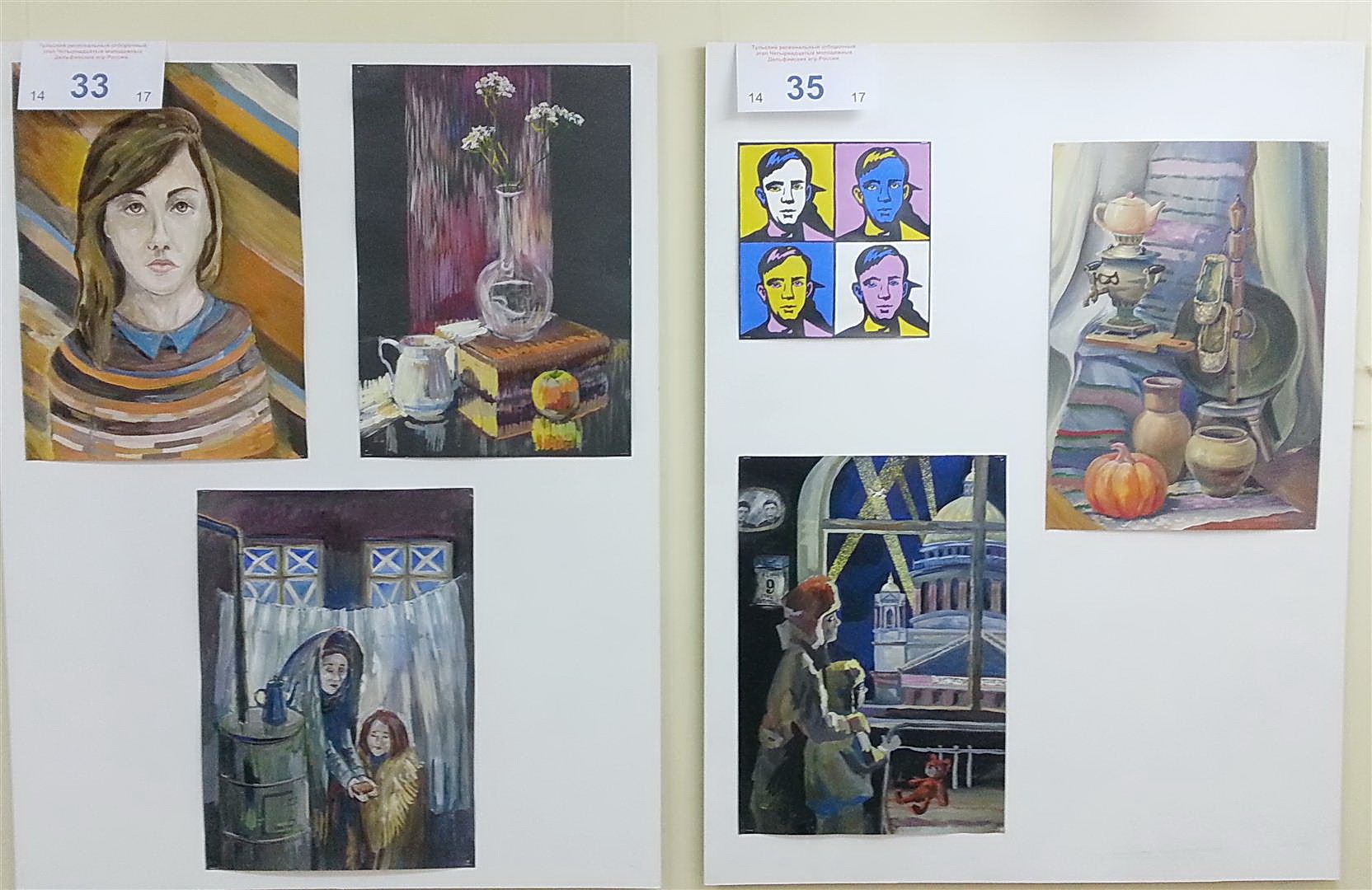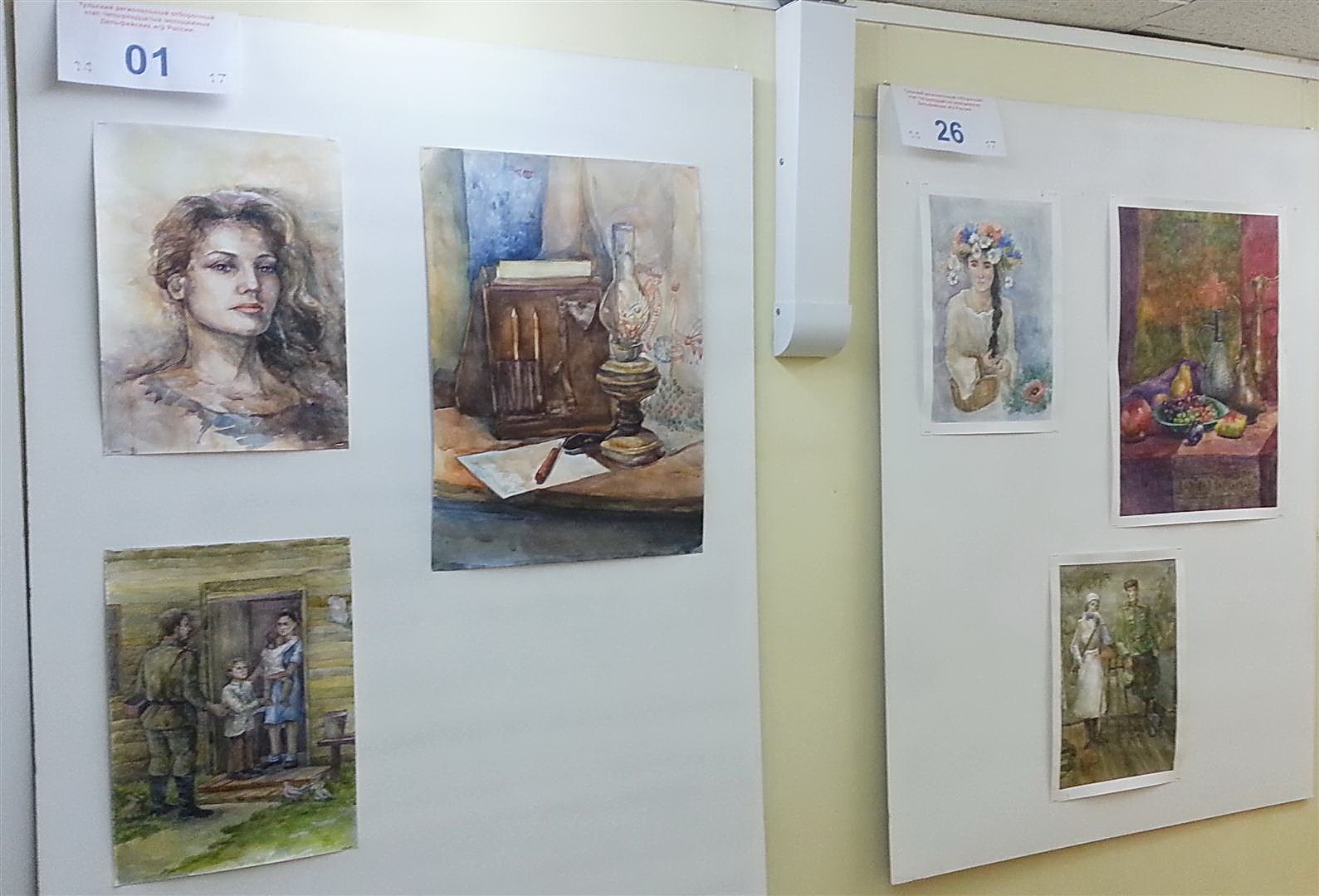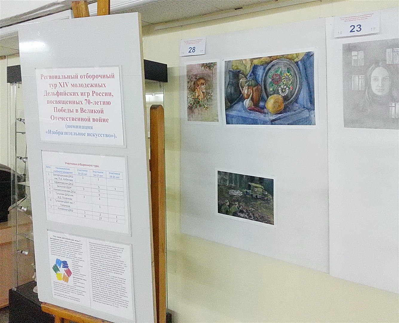 Тульский региональный отборочный тур "Дельфийские игры - 2015 год". Работы конкурсантов - учащихся художественных школ и художественных отделений Тульской области. Экспозиция в Тульской детской художественной школе им. В.Д. Поленова.