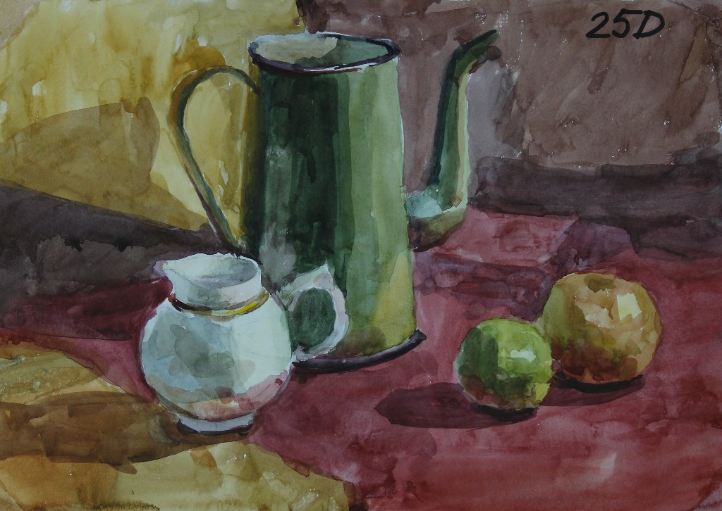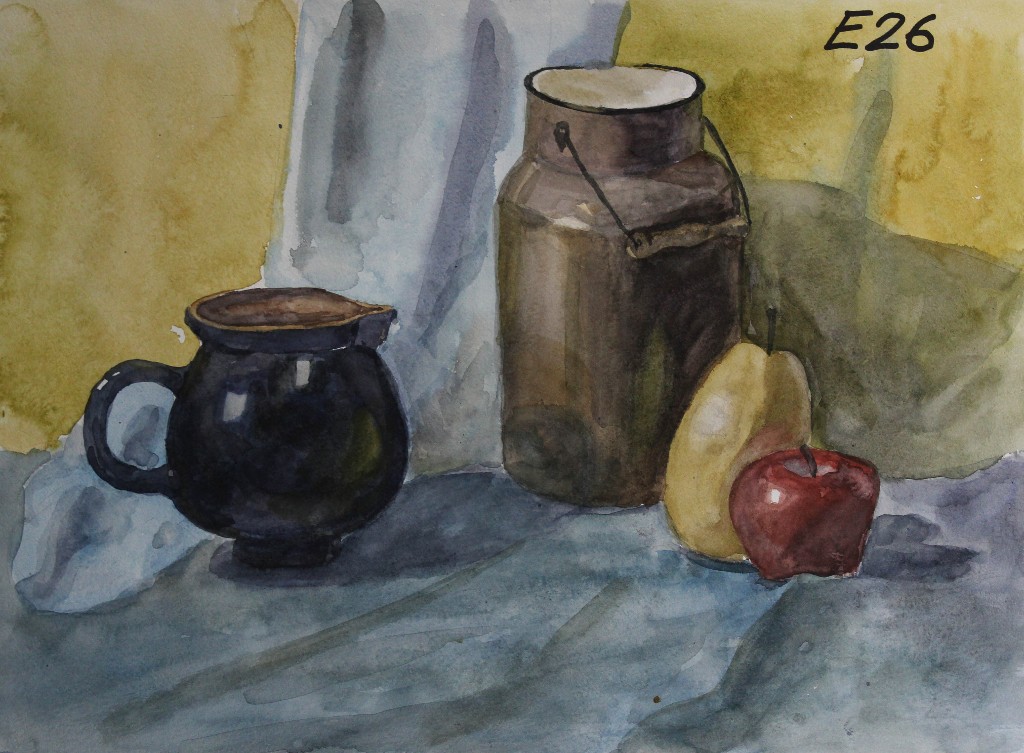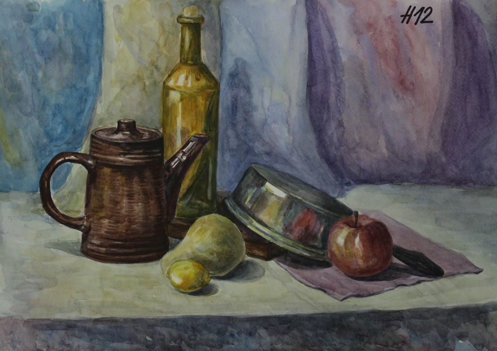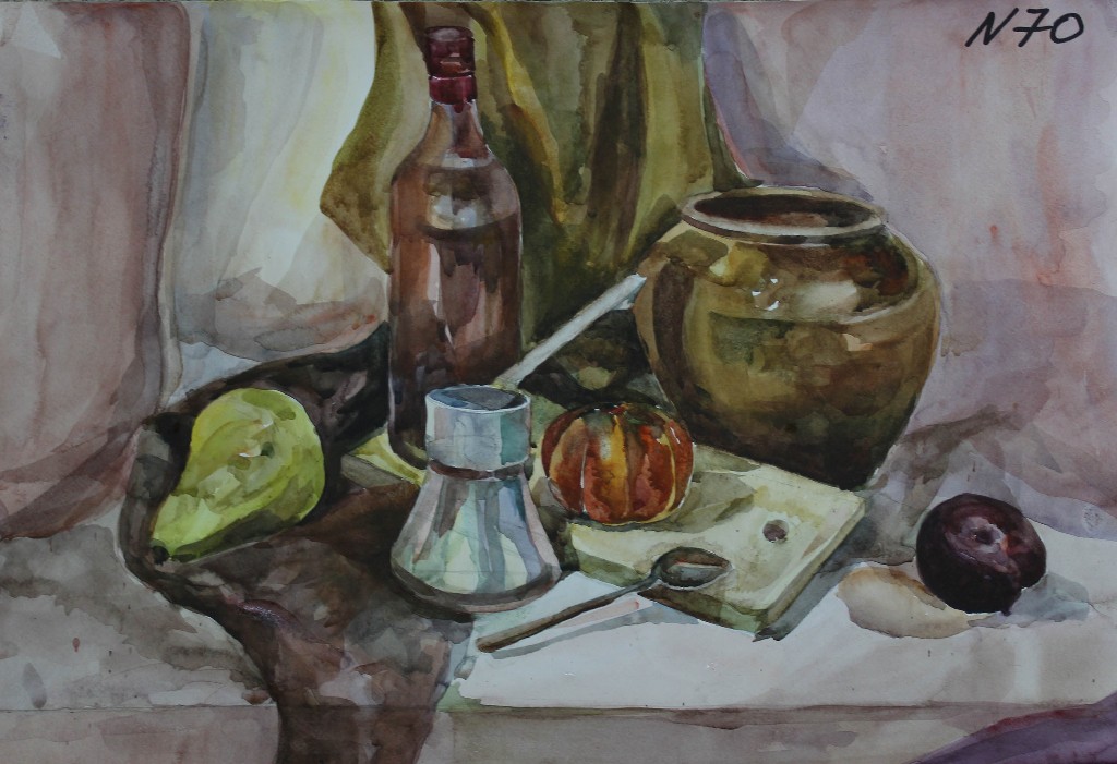 Натюрморт как жанр имеет глубокие исторические корни. В Европе он получил распространение в эпоху Возрождения, а к XVII веку стал самостоятельным направлением. В учебных заведениях академического типа натюрморт всегда занимал особое место, поскольку работа с предметным миром позволяет наиболее полно понять законы изображения пространства, пластики формы, взаимодействия света и цвета. Акварель в качестве материала обрела популярность в XVIII–XIX веках благодаря своей лёгкости, прозрачности, способности передавать нюансы света и воздушную среду. Сочетание натюрморта и акварели сделало этот жанр неотъемлемой частью художественного образования.