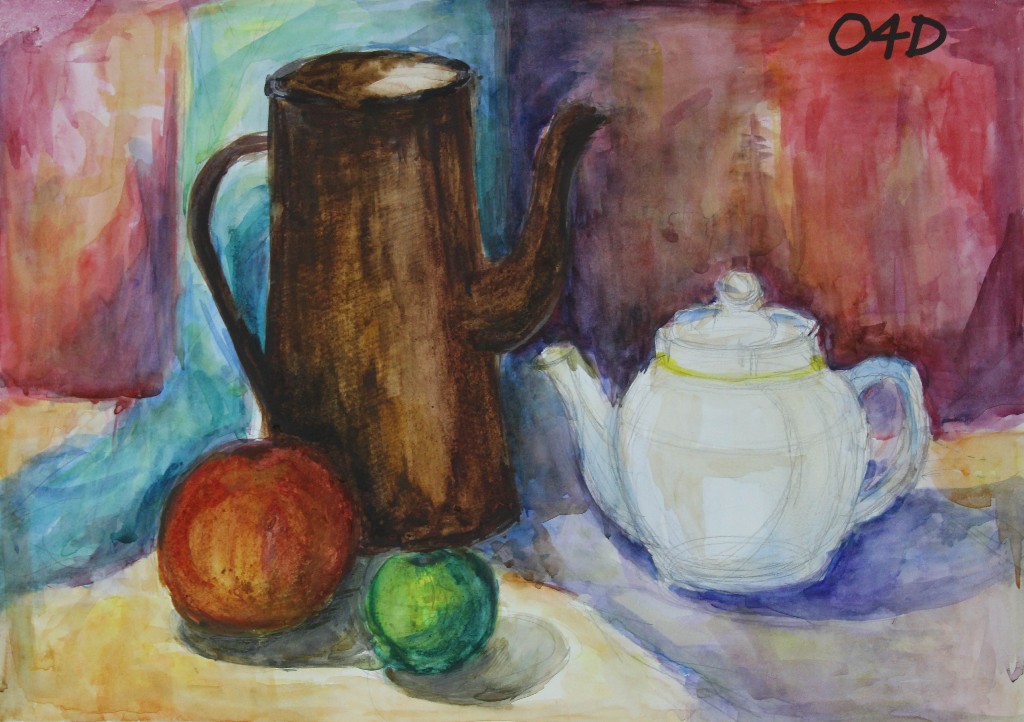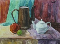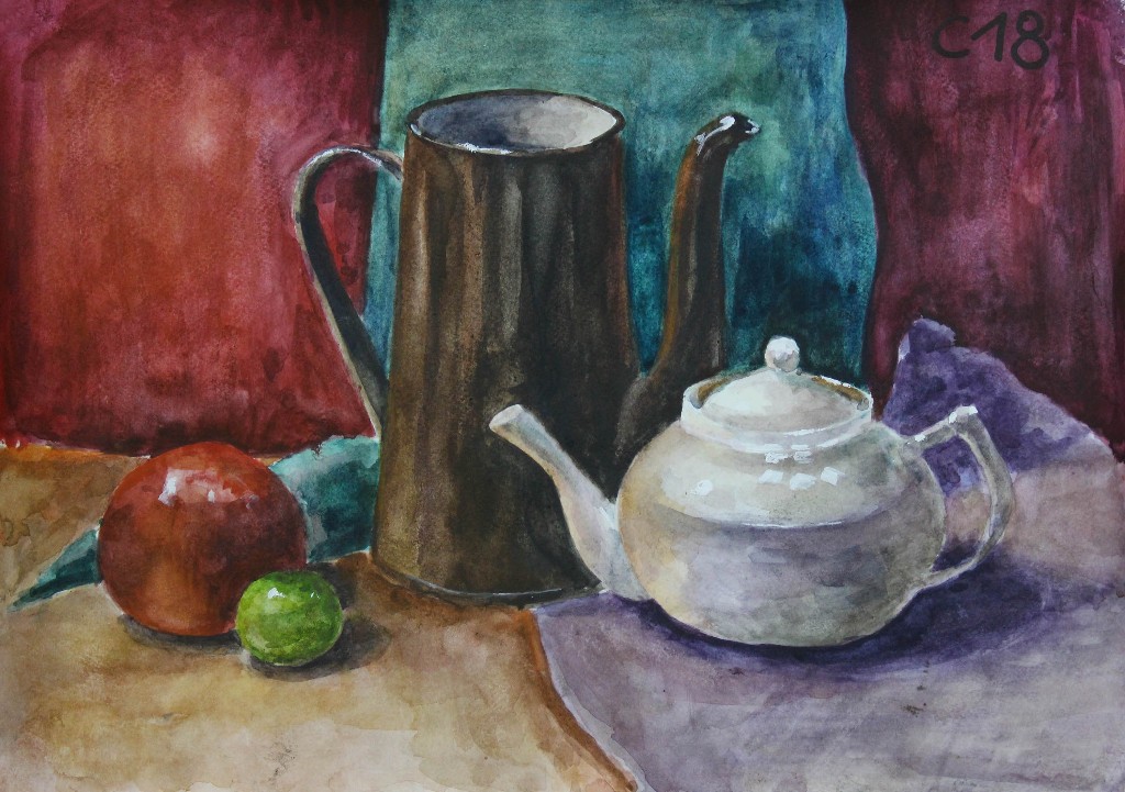 Учебный натюрморт не ограничивается копированием натуры. Это возможность для самостоятельного поиска выразительных средств: выбора цветовой гаммы, стилизации форм, создания особого настроения. По мере накопления опыта учащиеся переходят от точной передачи предметов к творческому интерпретированию увиденного — создают собственные композиции, играют с цветом, фактурой, ритмом.