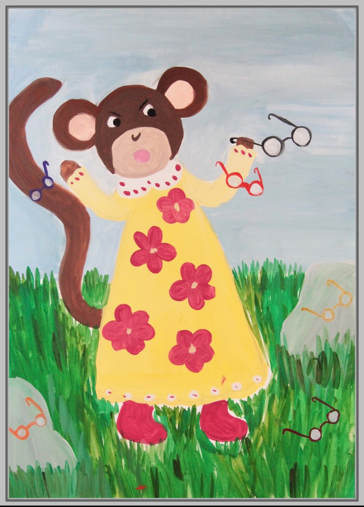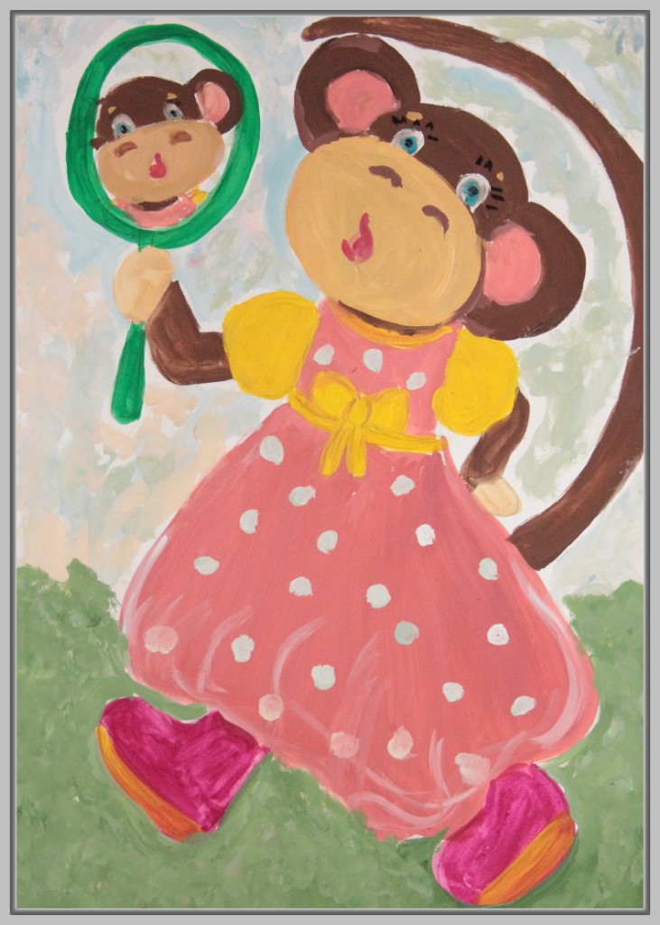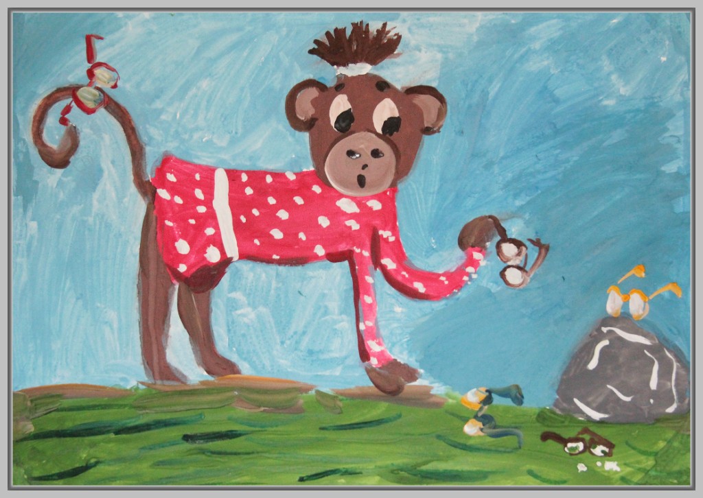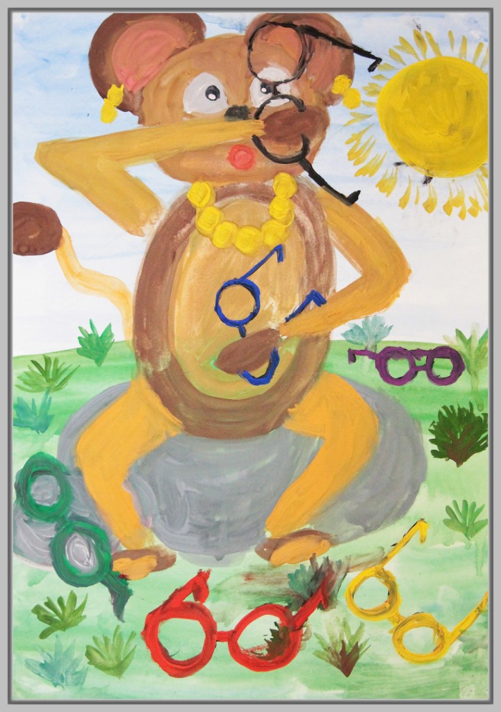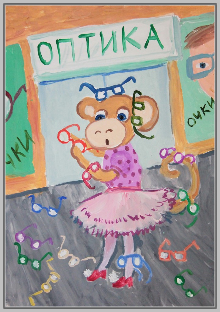 В работах к этой басне можно увидеть комический подход: мартышка примеряет очки разными способами, пытается носить их на хвосте, лапе, голове. Здесь важна мимика, жесты, игра с деталями. Некоторые юные художники изображают целую серию кадров, чтобы передать развитие ситуации.