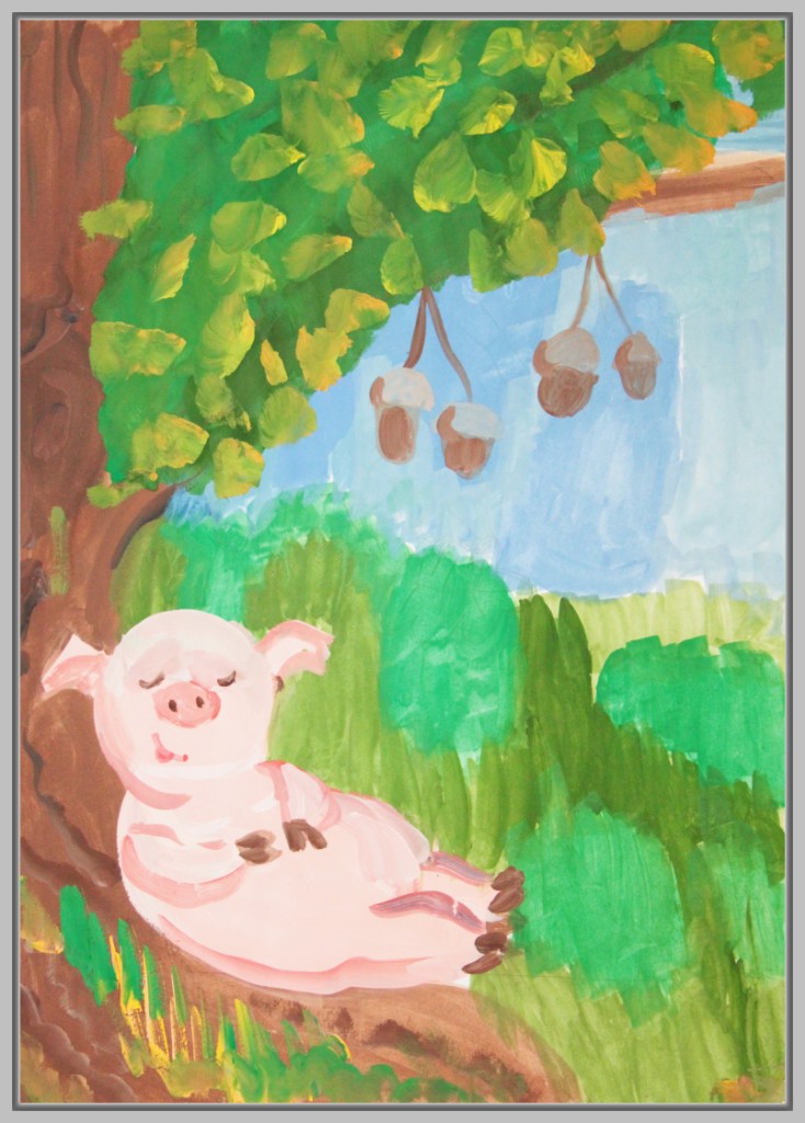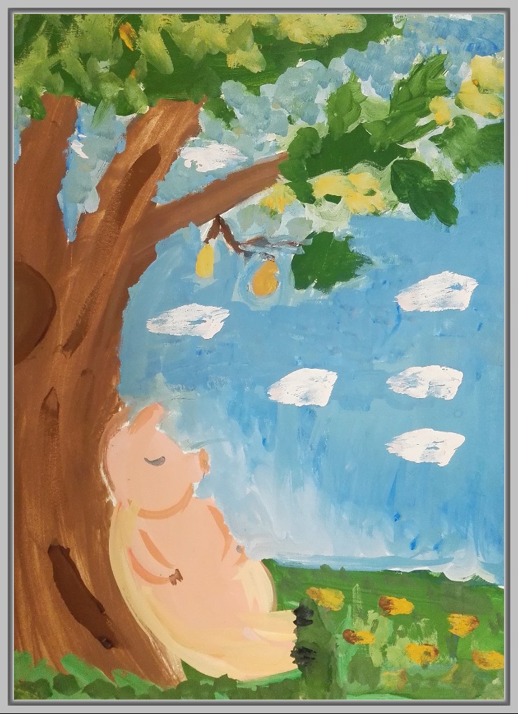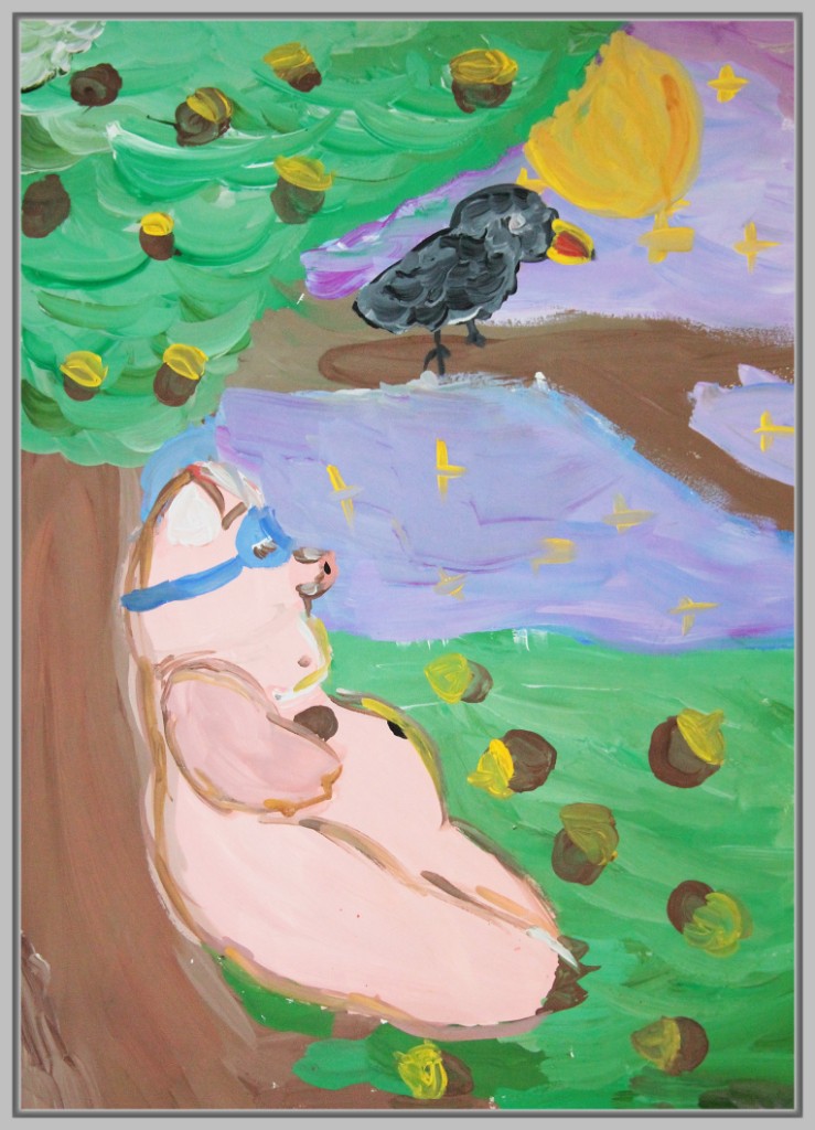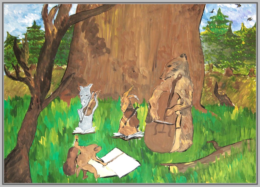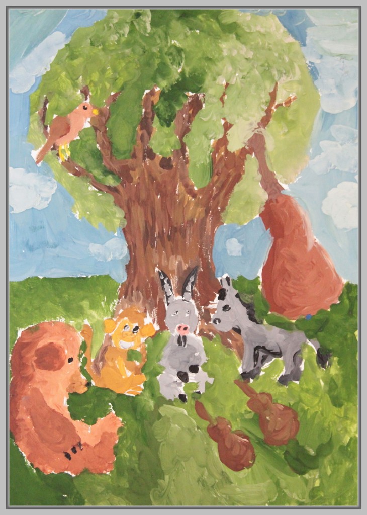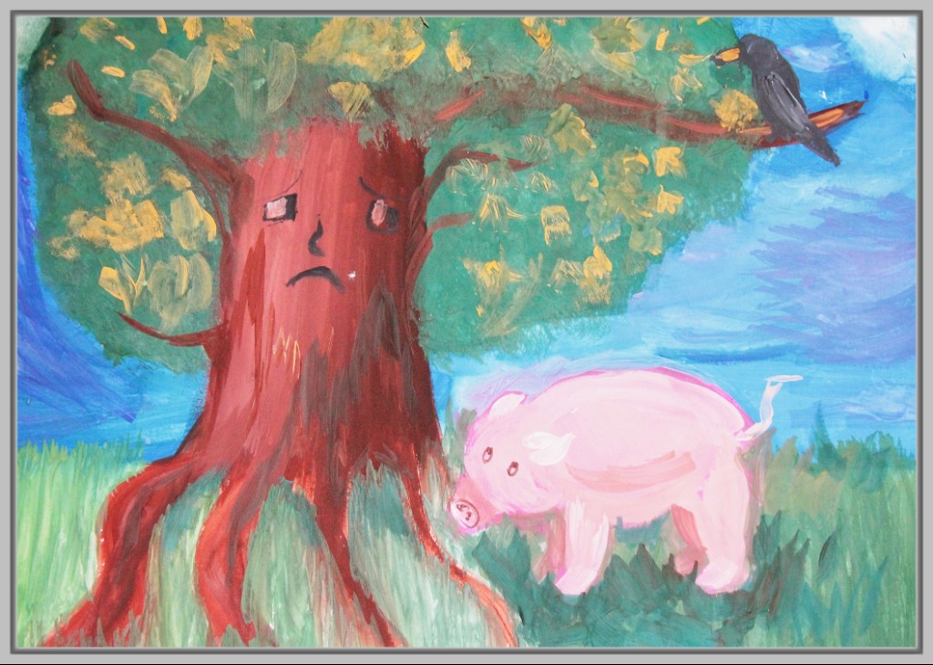 Особой популярностью пользуется сцена, где трое животных тянут повозку в разные стороны. Юные художники подчёркивают не только физическую невозможность движения, но и передают эмоциональное отчаяние и разногласия героев. Важно, что в некоторых работах дети изображают не только действие, но и фоновое окружение — лес, реку, дорогу, что добавляет композиции глубины.