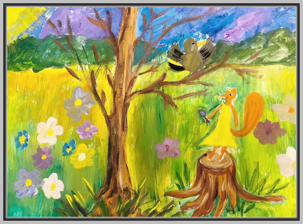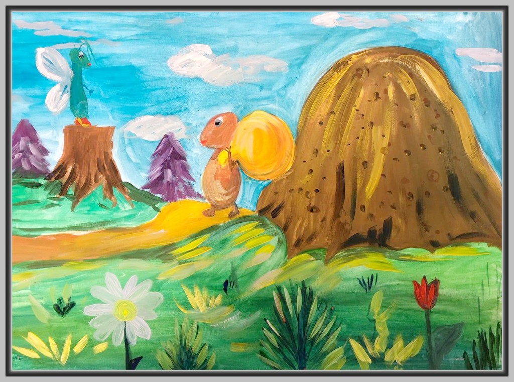 Эта басня часто вдохновляет на создание ярких, динамичных образов: лёгкая, беспечная стрекоза контрастирует с серьёзным, трудолюбивым муравьём. Некоторые дети изображают лето и зиму, чтобы показать смену времён и развитие сюжета. В композициях встречается символика — зерно, снежинки, травы и цветы, которые помогают раскрыть характеры героев.