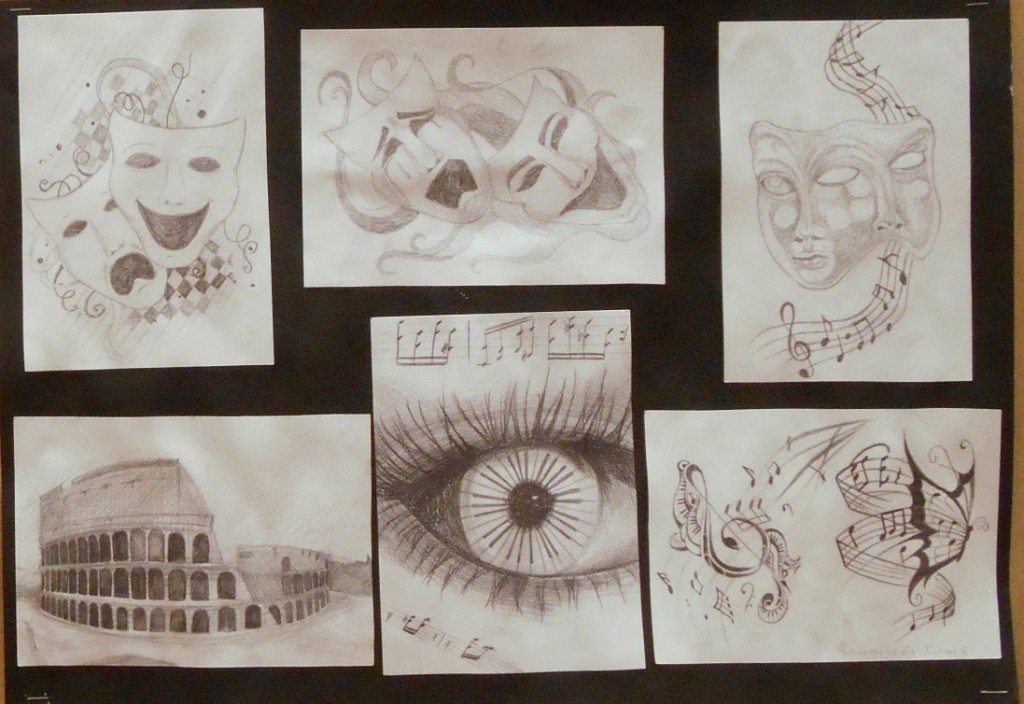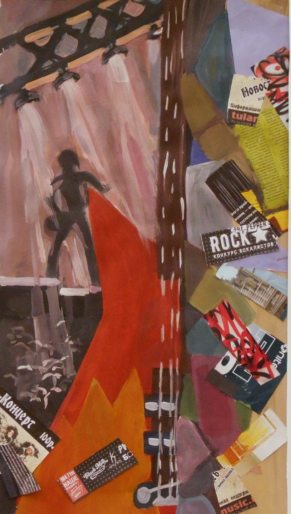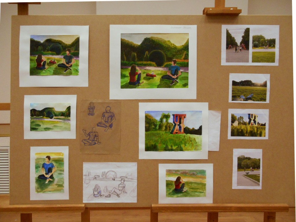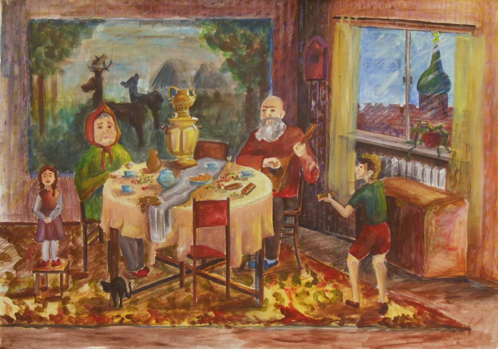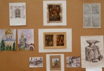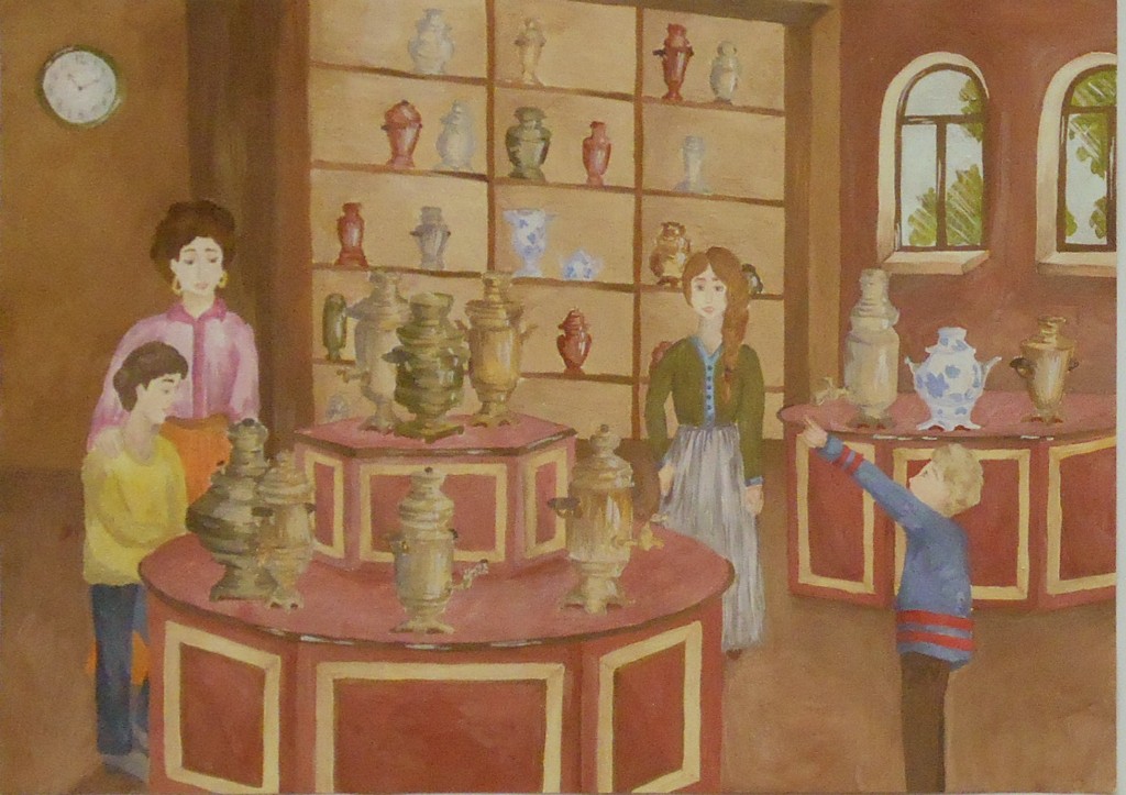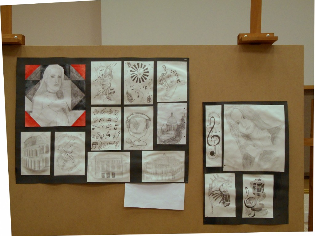 – особое внимание уделено грамотному композиционному эскизированию, который начинается от поиска равновесия и гармонизации цвето-тональных пятен, масс в листе, разработки большого количества абстрактных клаузур, что позволяет грамотно организовать лист на выходе (Вермищян Анна «Восточные мотивы», рук. Баженова Т.Ю.; Ильина Ангелина «В музее самоваров», рук. Тараторкина Н.С.; );