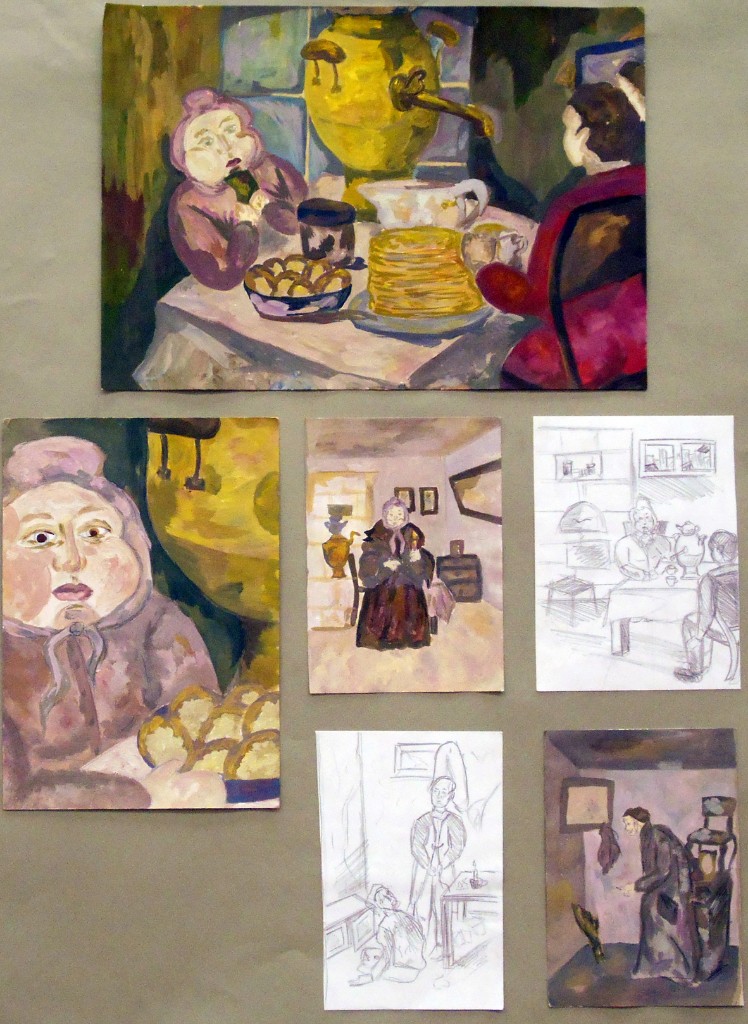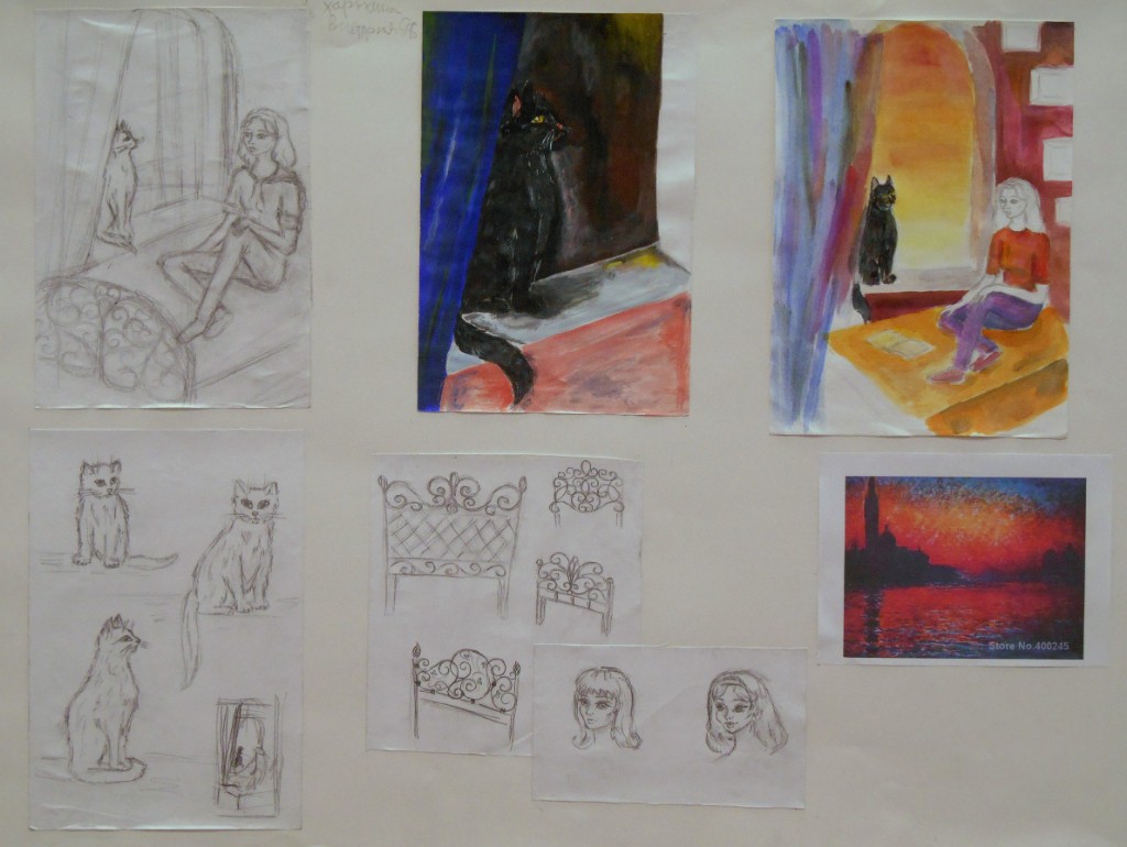 - «литературность», «иллюстративность» большинства работ на выходе (попытка решить образы героя через эмоциональность и мимику, перенасыщенность композиции выразительными деталями, «рассказывающими» о действии) не является вопиющим недостатком для художественной школы, но тем не менее этого момента следует по возможности избегать;