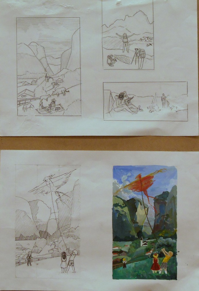 - при выходе с эскизного варианта на формат учащиеся в большинстве случаев начинают компоновать работу заново, не используя утвержденный вариант, не умеют пользоваться масштабной сеткой для простого увеличения утвержденного эскиза до необходимого формата.