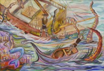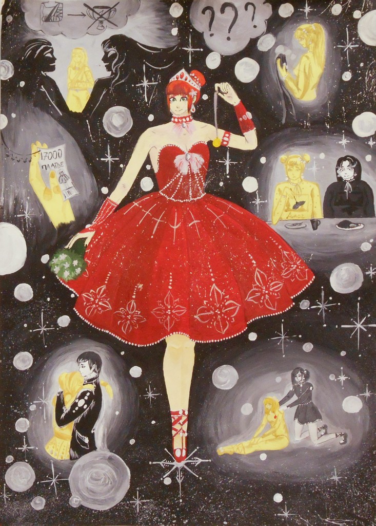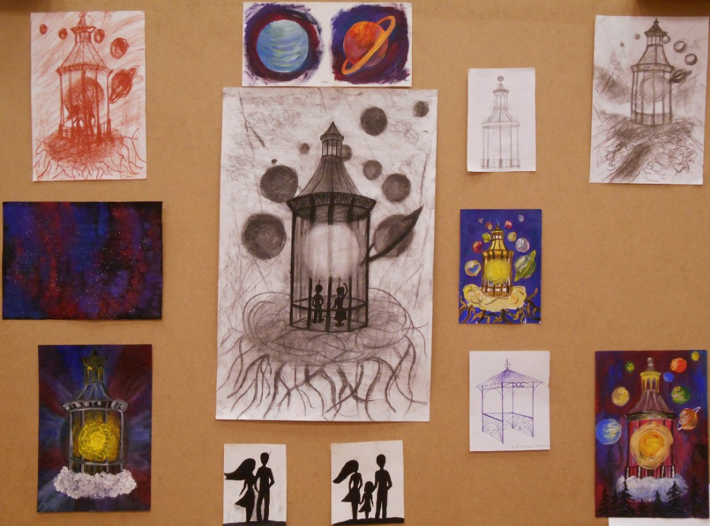 - в ряде случаев учащиеся выбирали для изображения сложные философские, почти метафизические мотивы, но недостаток жизненного опыта, насмотренность на китчевые образцы подобных творений в интернете, незнание сложных предпосылок сюрреализма, «магического» реализма усугубляло «литературность», «безжизненность» и пошлость подобных трактовок."