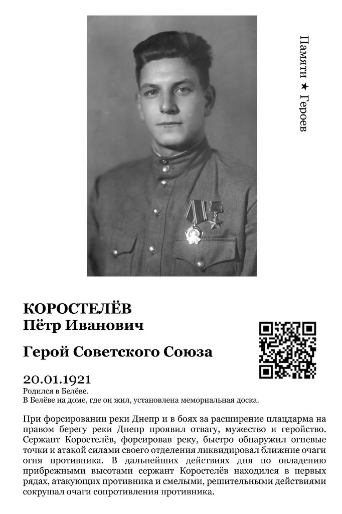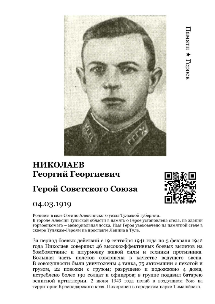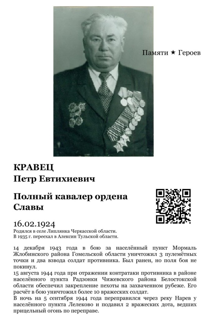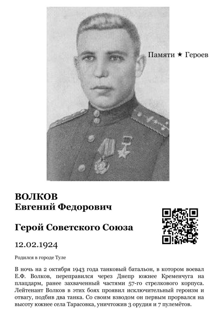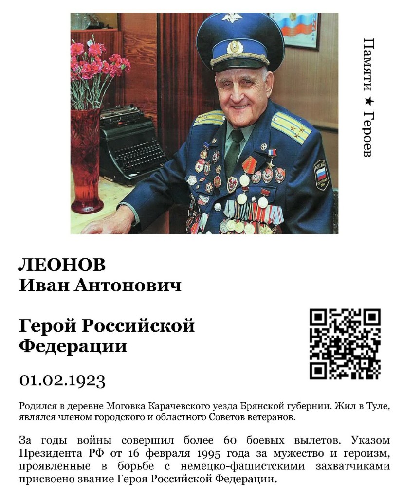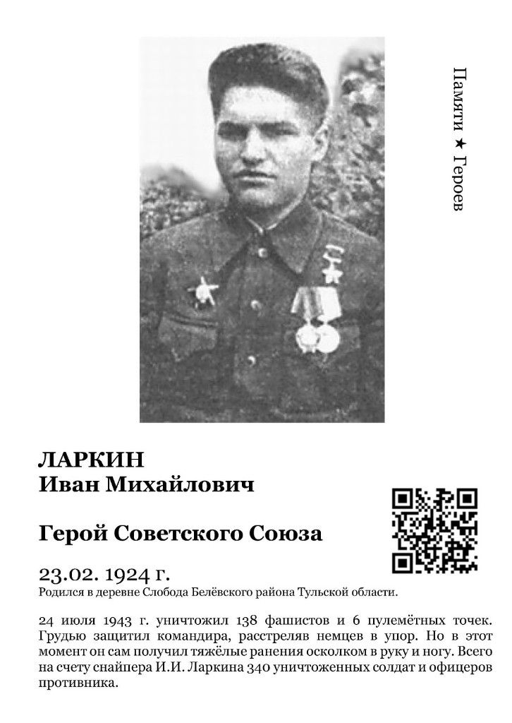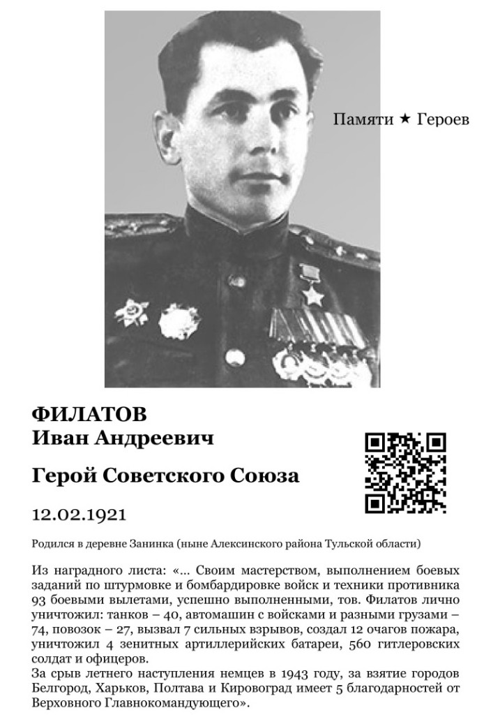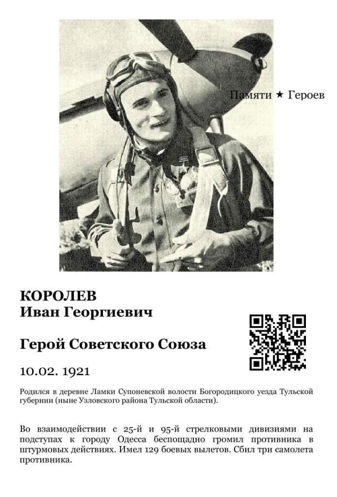 В рамках проекта в Туле подготовлены и размещены плакаты с фотографиями и биографиями Героев Советского Союза, Героев Российской Федерации - участников Великой Отечественной войны, полных кавалеров ордена Славы, родившихся, проживающих и проживавших на Тульской земле. Каждой фотографии присваивается QR-код, который ведет на видеоролик с рассказом о герое.