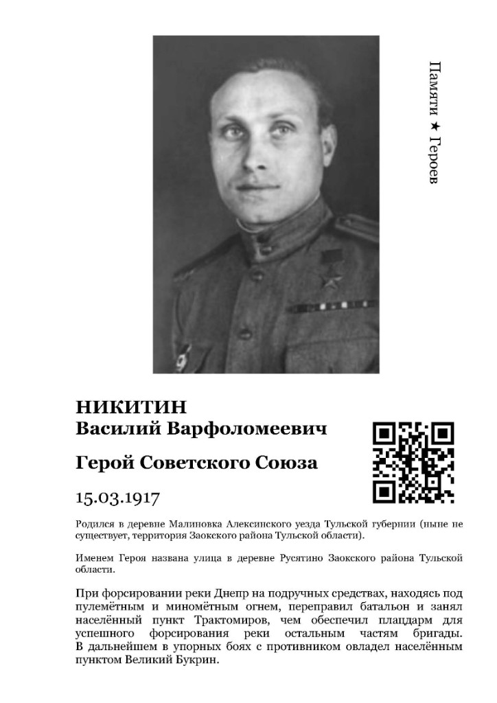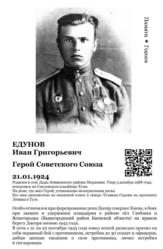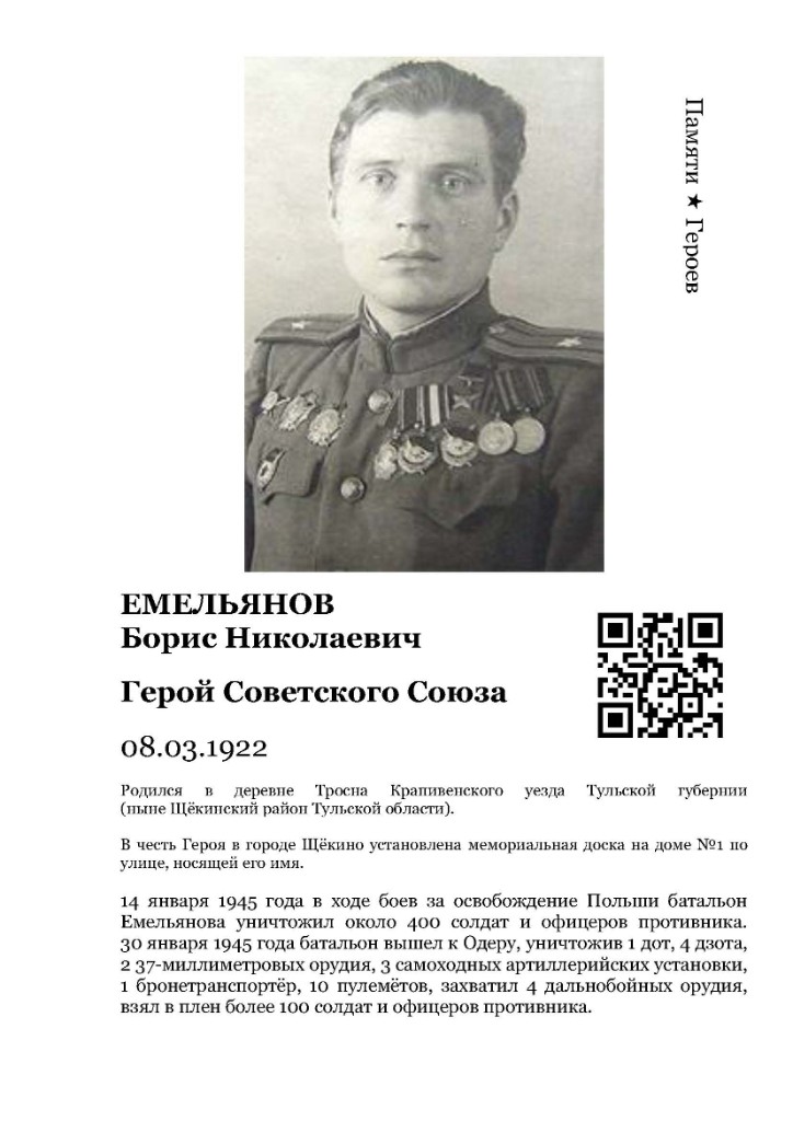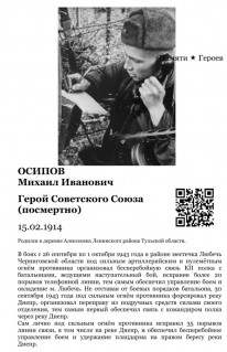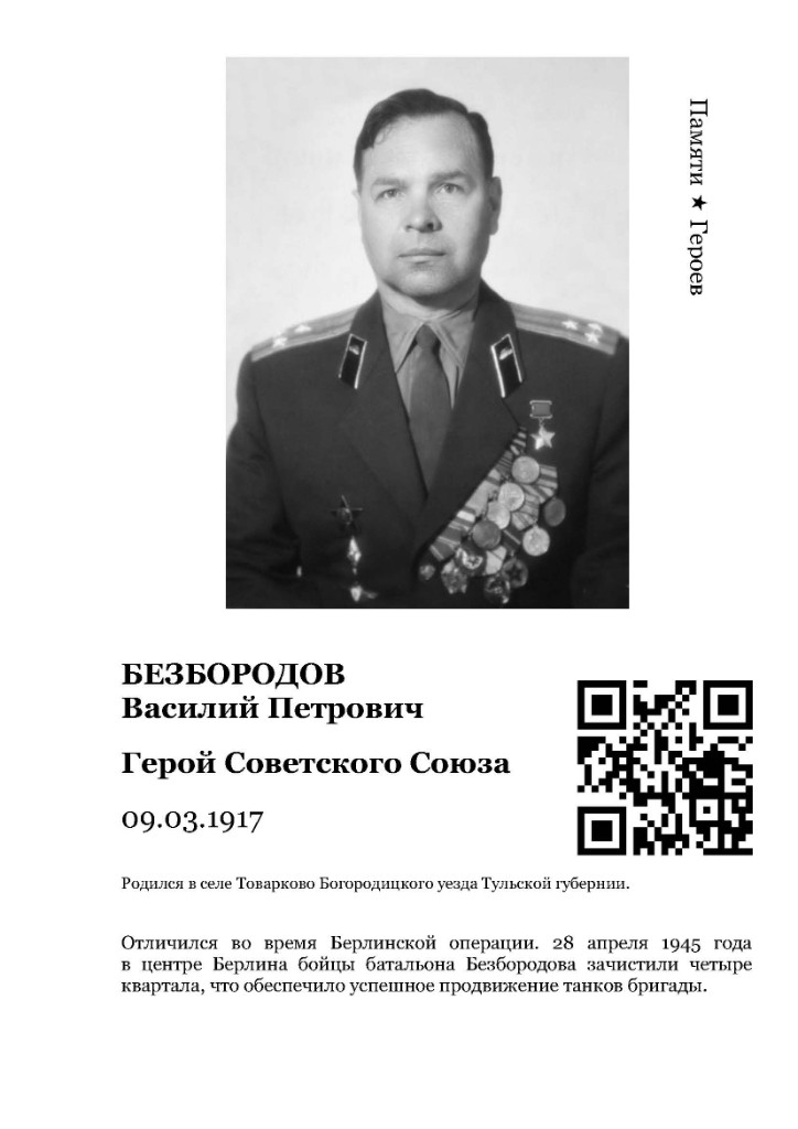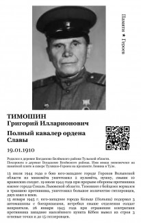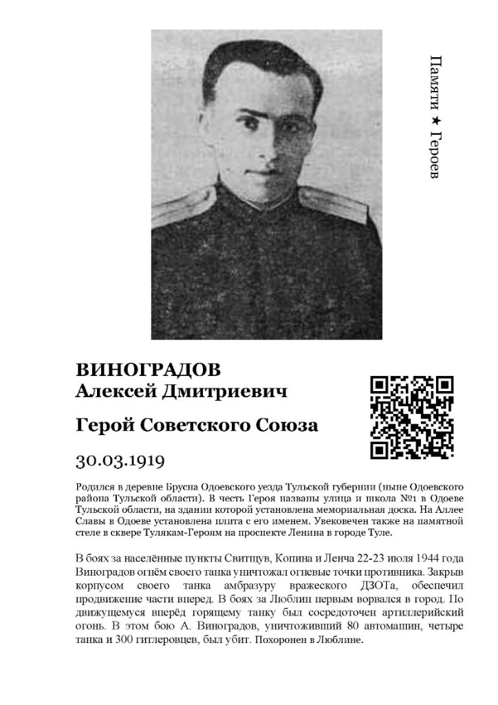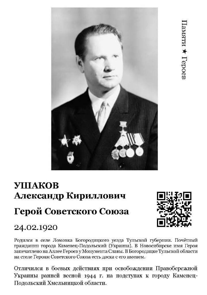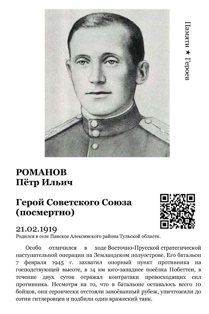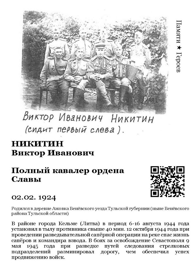 В рамках проекта в Туле подготовлены и размещены плакаты с фотографиями и биографиями Героев Советского Союза, Героев Российской Федерации - участников Великой Отечественной войны, полных кавалеров ордена Славы, родившихся, проживающих и проживавших на Тульской земле. Каждой фотографии присваивается QR-код, который ведет на видеоролик с рассказом о герое.